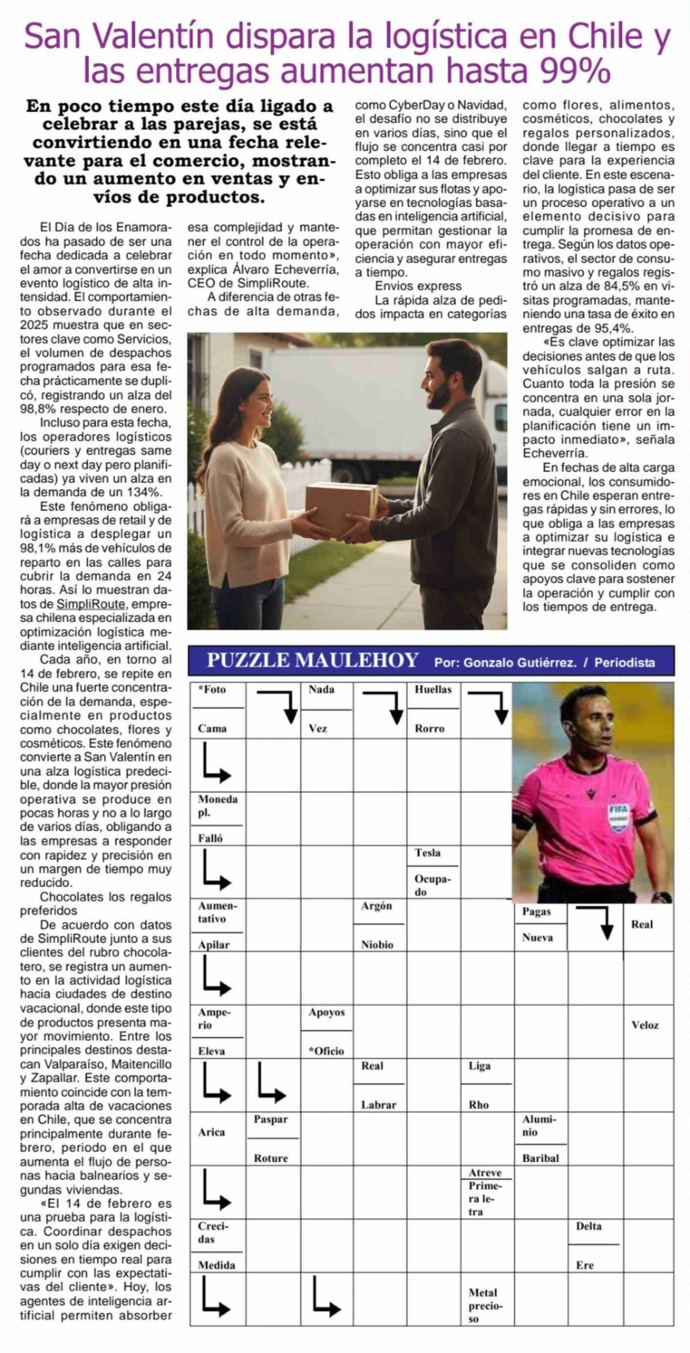 San Valentín dispara la logística en Chile y las entregas aumentan hasta 99% 12-02-2026 Maule Hoy |