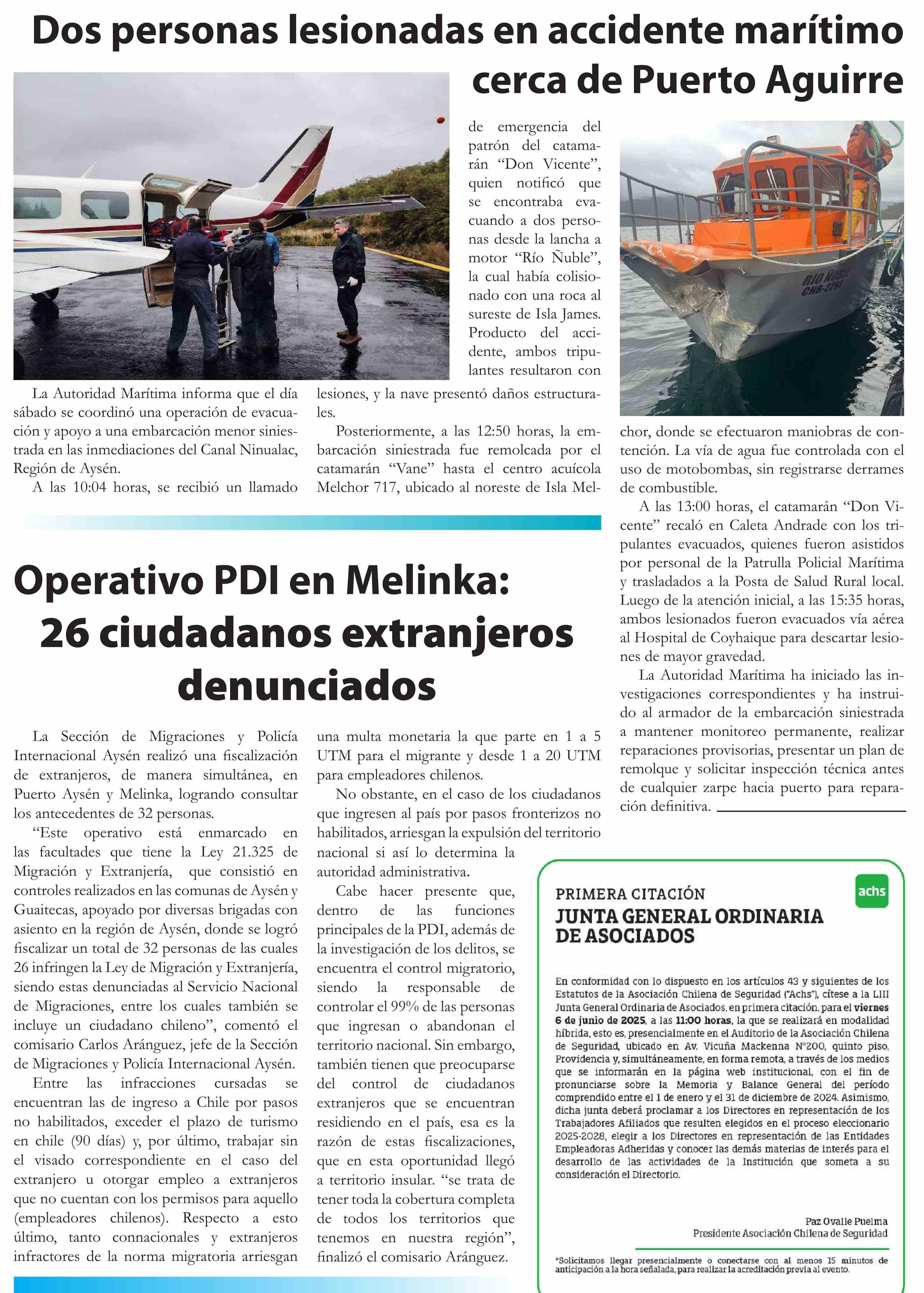 Fecha: 26-05-2025 Sector: Noticia general Región: Región Aysén del General Carlos Ibáñez del Campo