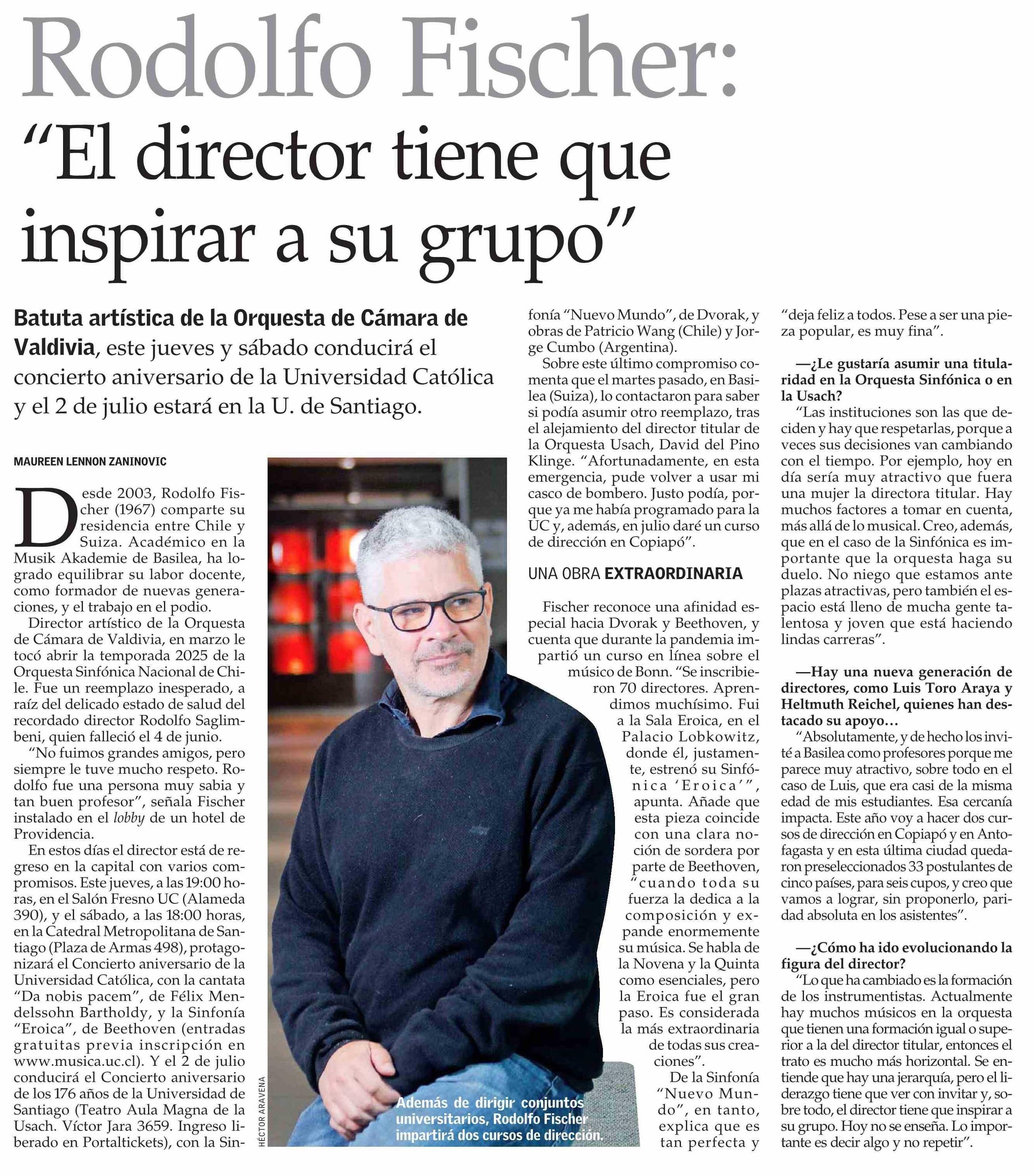 Rodolfo Fischer: El director tiene que inspirar a su grupo” “ 24-06-2025 El Mercurio |