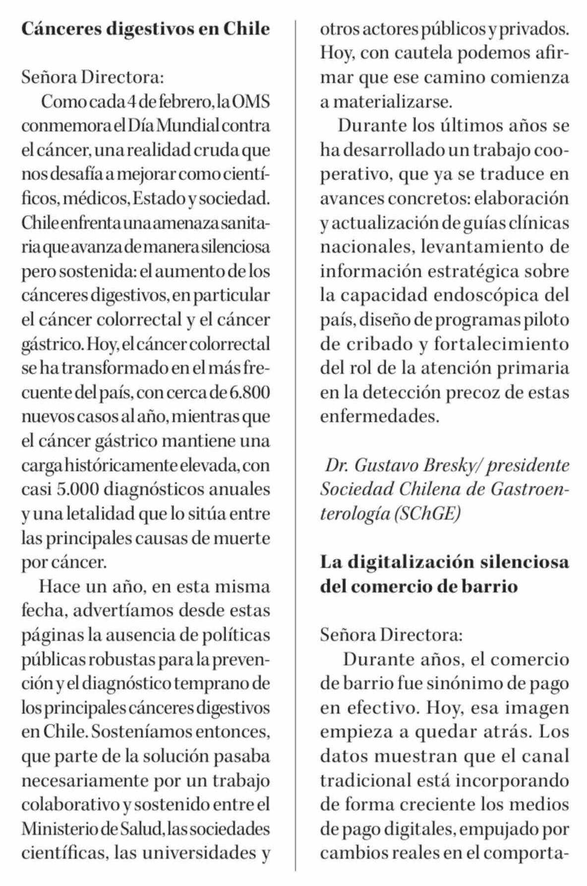 Cartas: Cánceres digestivos en Chile