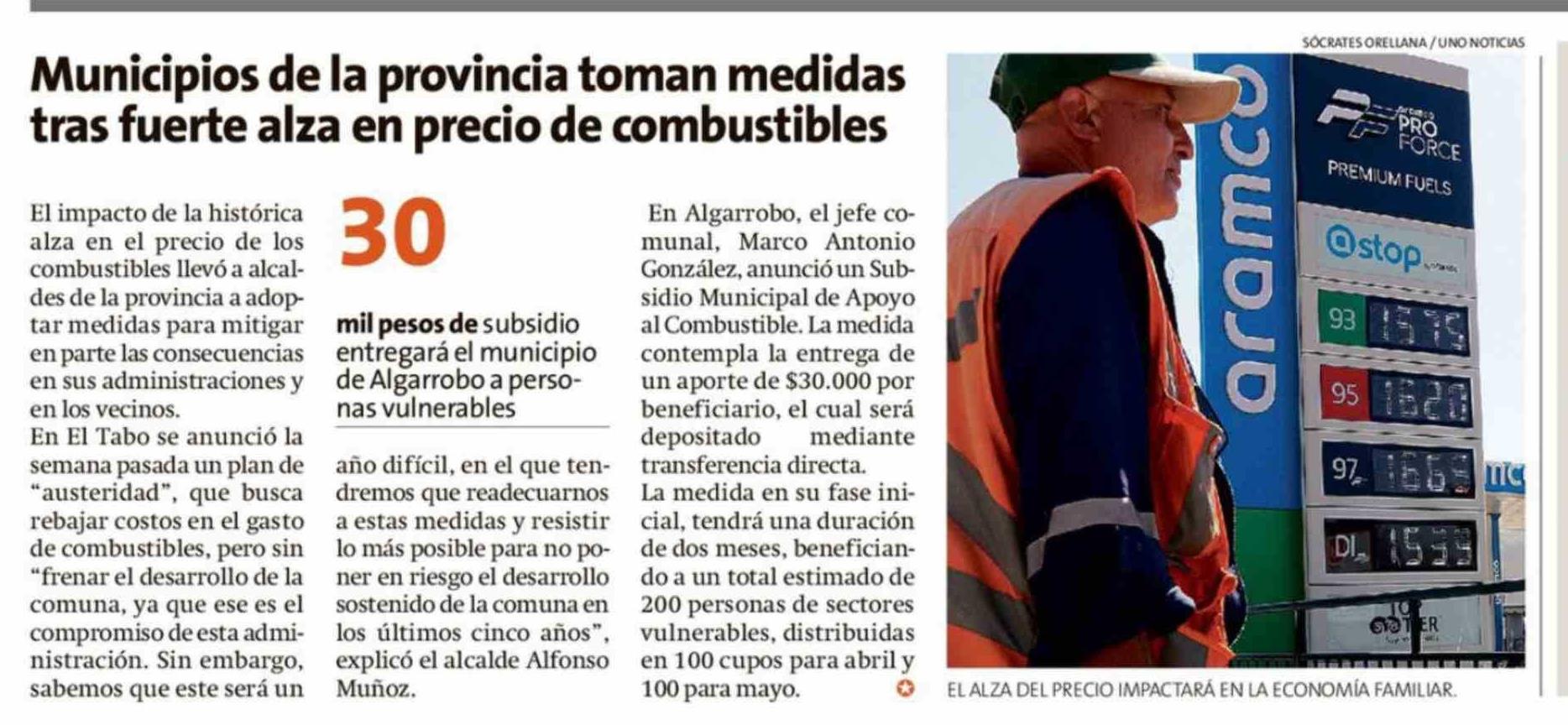 Título: Municipios de la provincia toman medidas tras fuerte alza en precio de combustibles