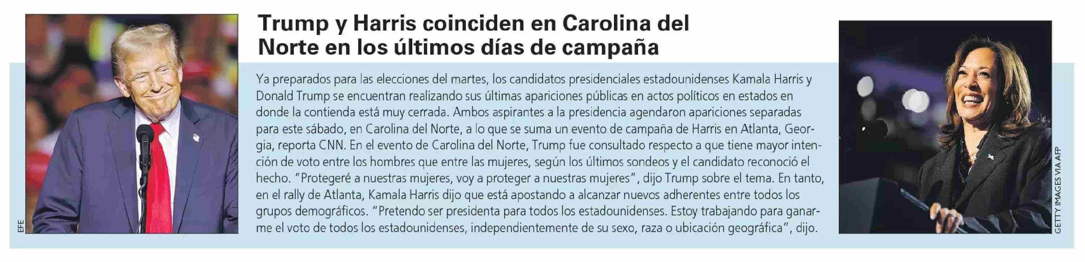 Trump y Harris coinciden en Carolina del Norte en los últimos días de campaña 03-11-2024 Las Últimas Noticias |