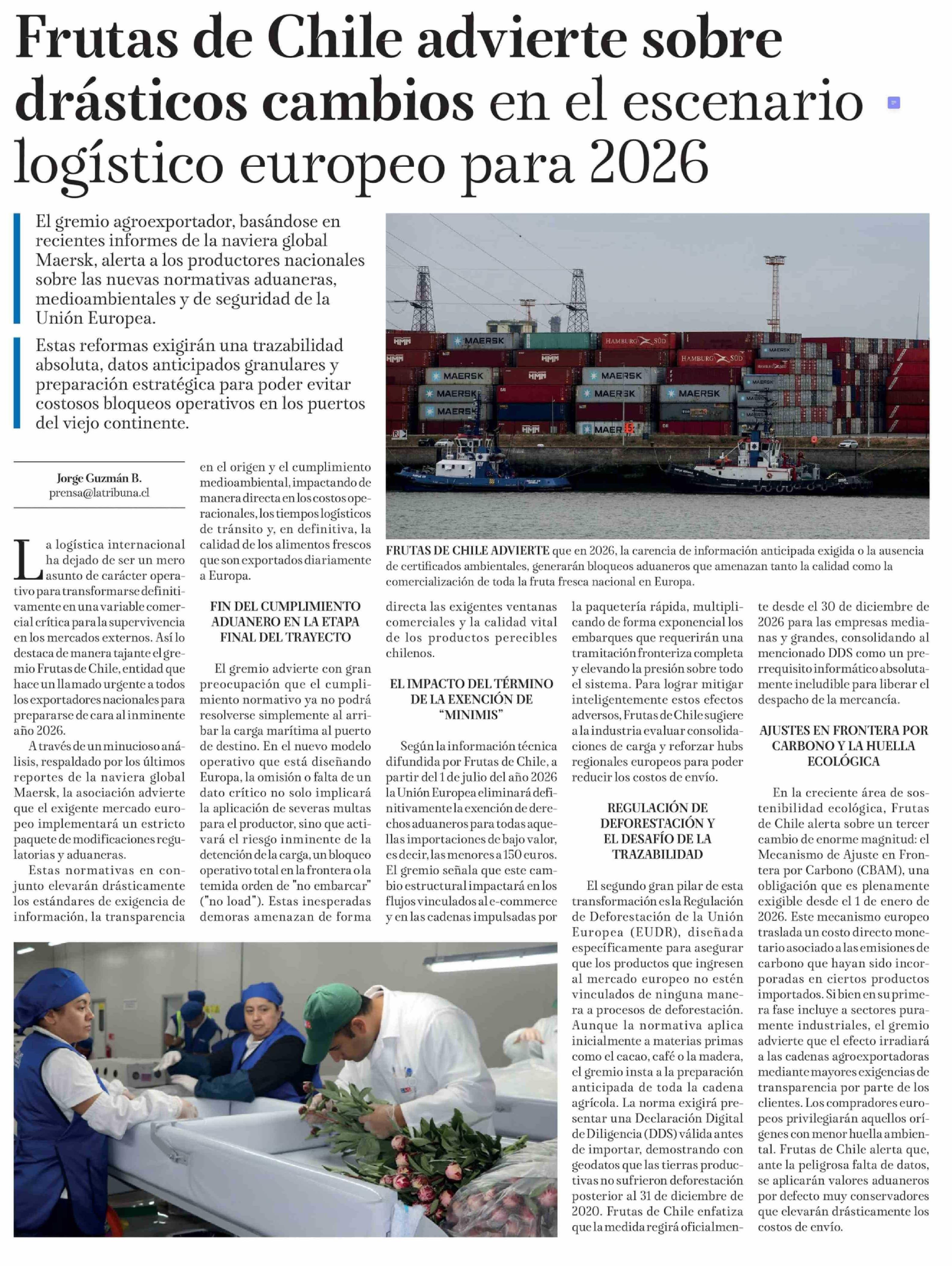 Título: Frutas de Chile advierte sobre drásticos cambios en el escenario logístico europeo para 2026