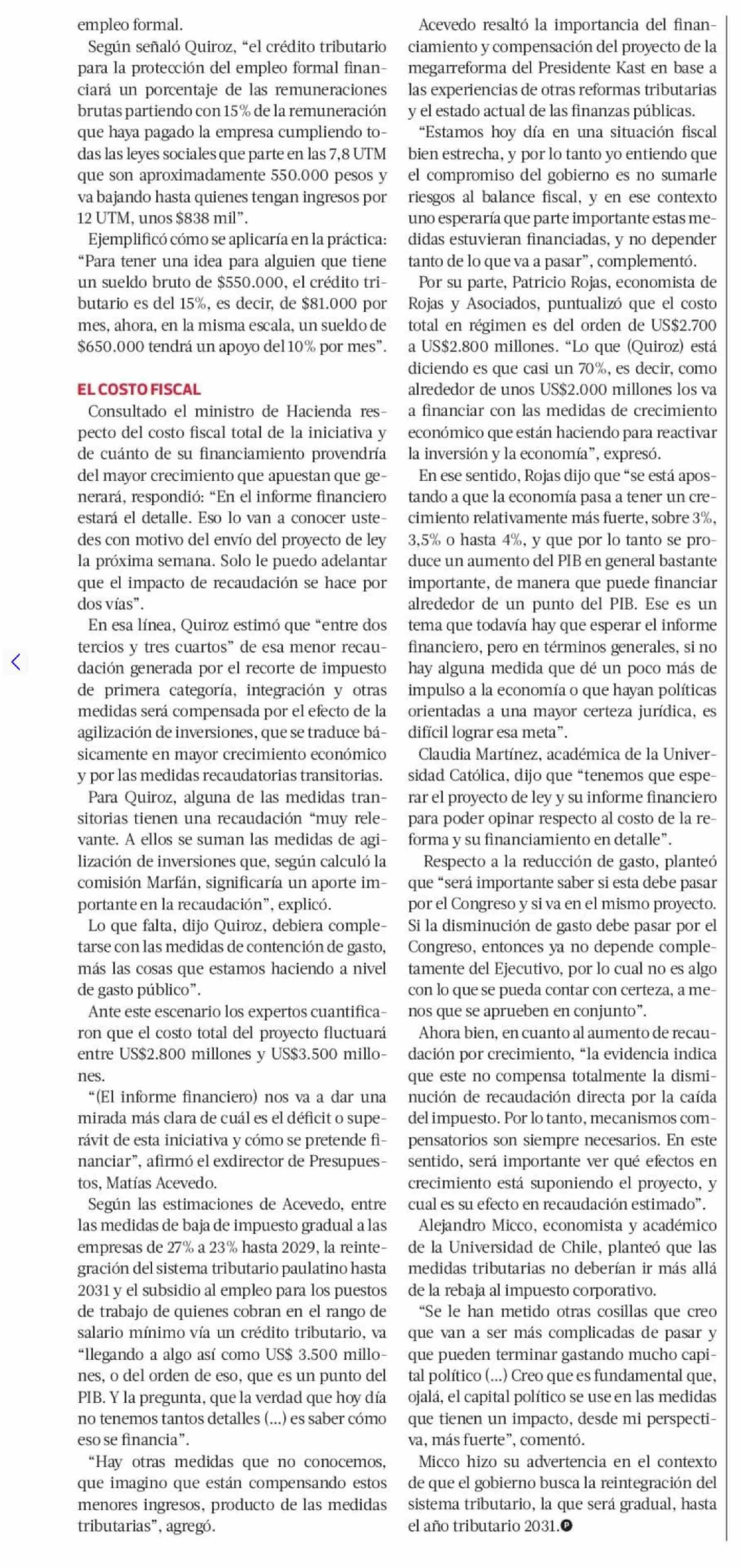 | Título: | Megarreforma se financiará mayormente con medidas transitorias y crecimiento, y expertos cifran costo entre US$2.800 millones y US$3.500 millones |