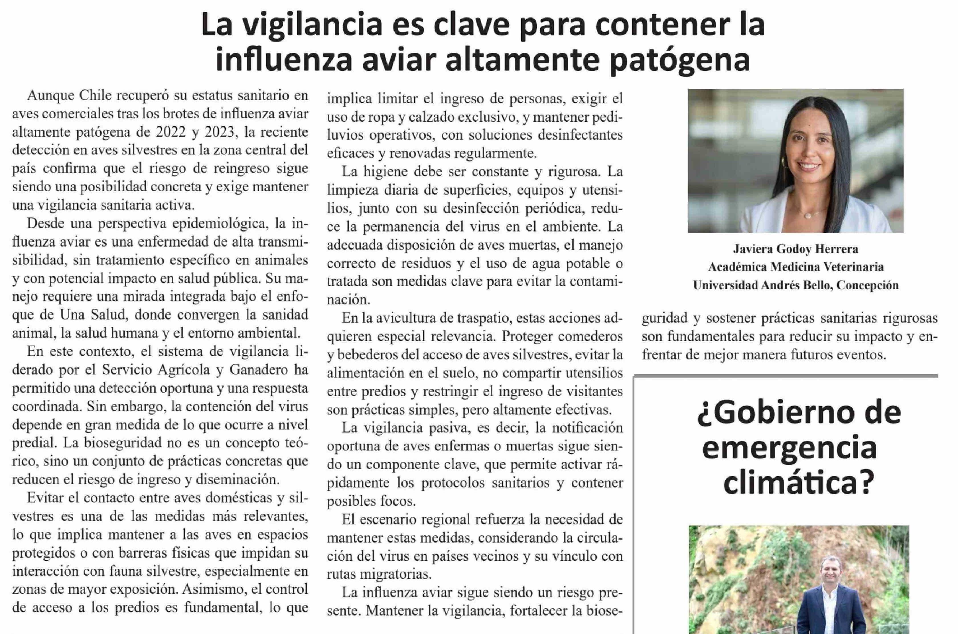 Título: Columnas de Opinión: La vigilancia es clave para contener la influenza aviar altamente patógena