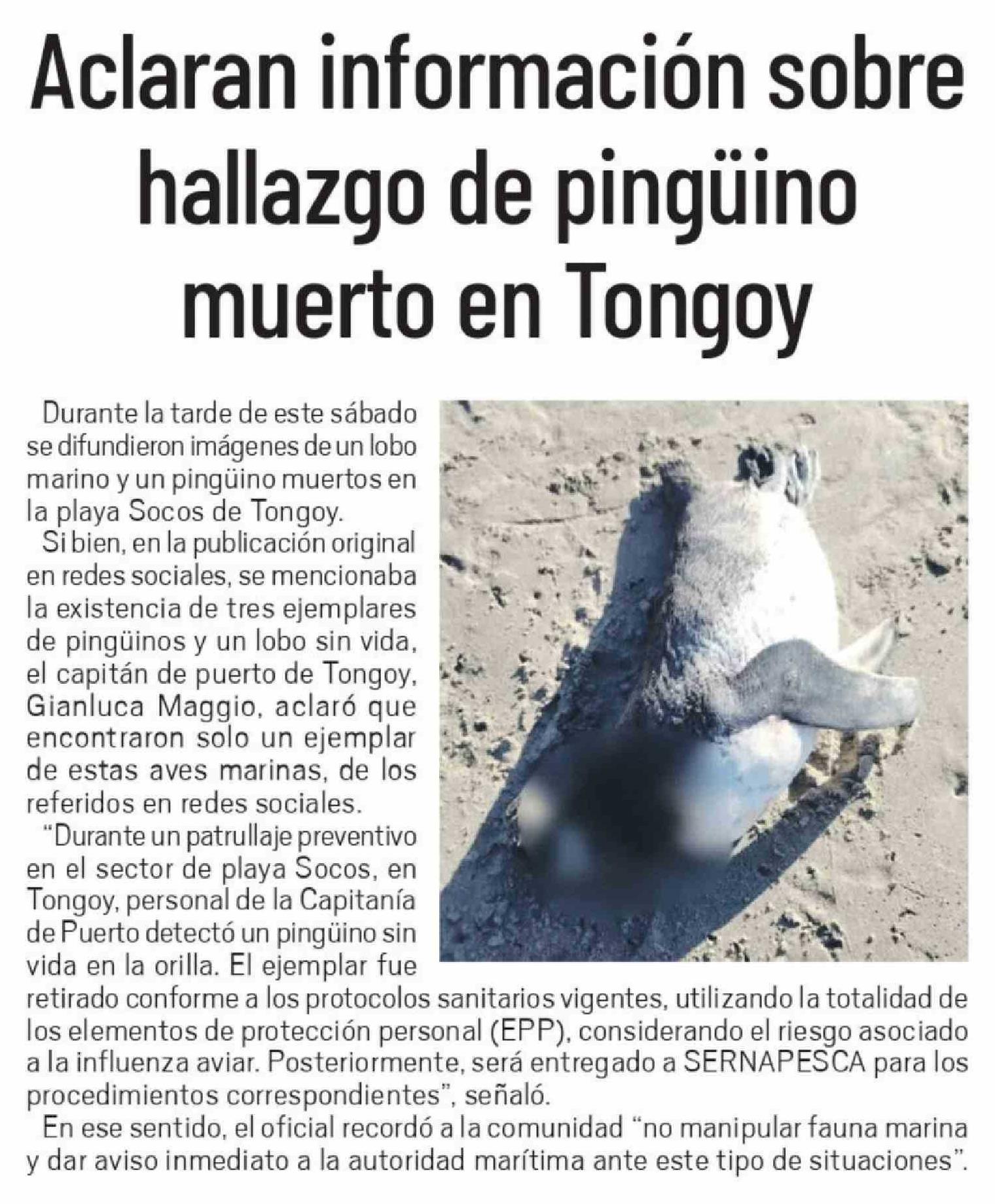 Título: Aclaran información sobre hallazgo de pingüino muerto en Tongoy