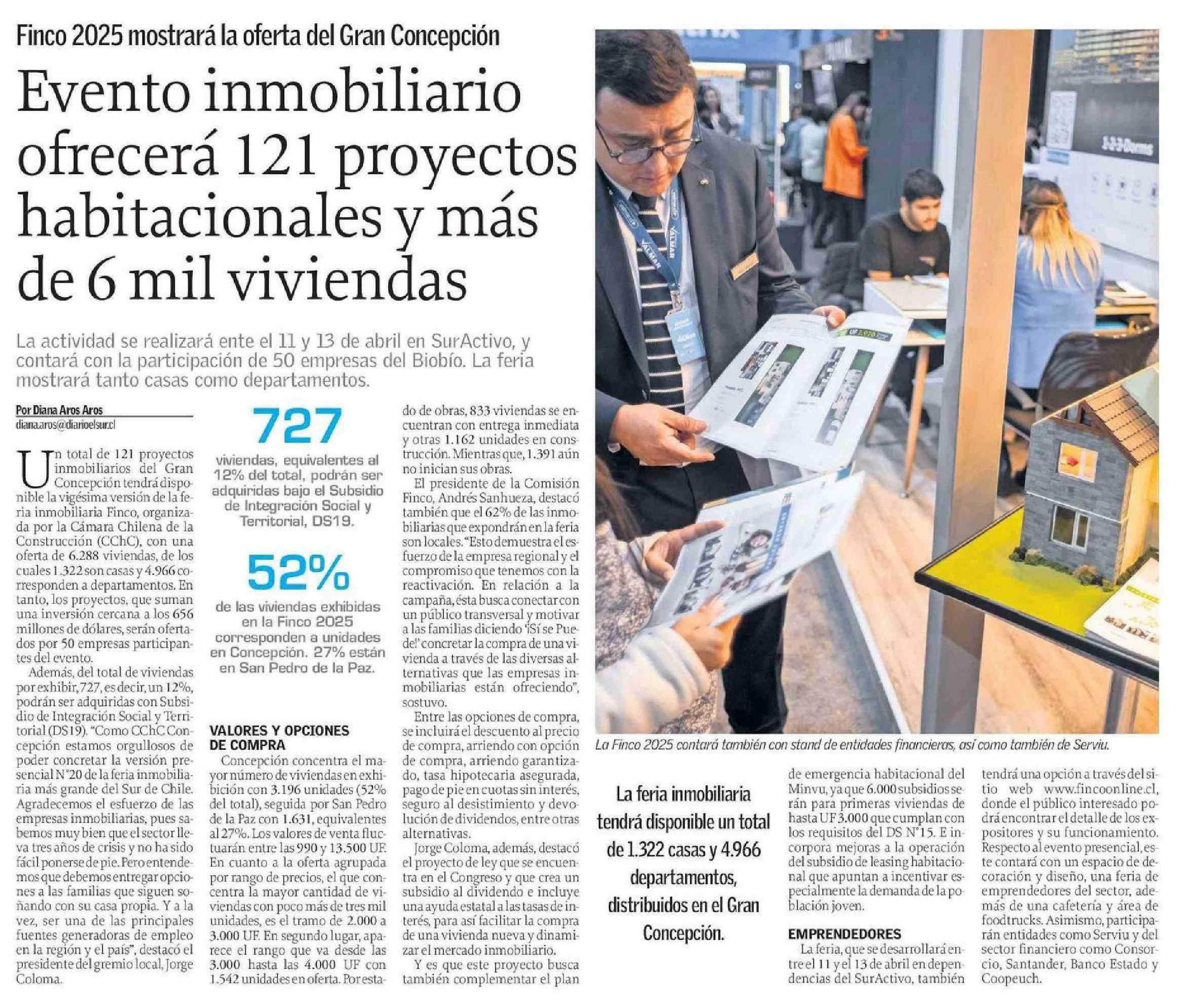 Evento inmobiliario ofrecerá 121 proyectos habitacionales y más de 6 mil viviendas 05-04-2025 El Sur |
