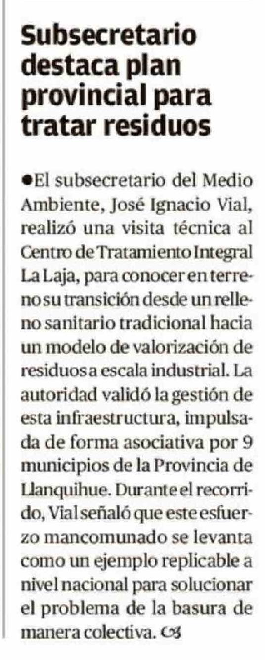 Subsecretario destaca plan provincial para tratar residuos 19-04-2026 El Llanquihue |