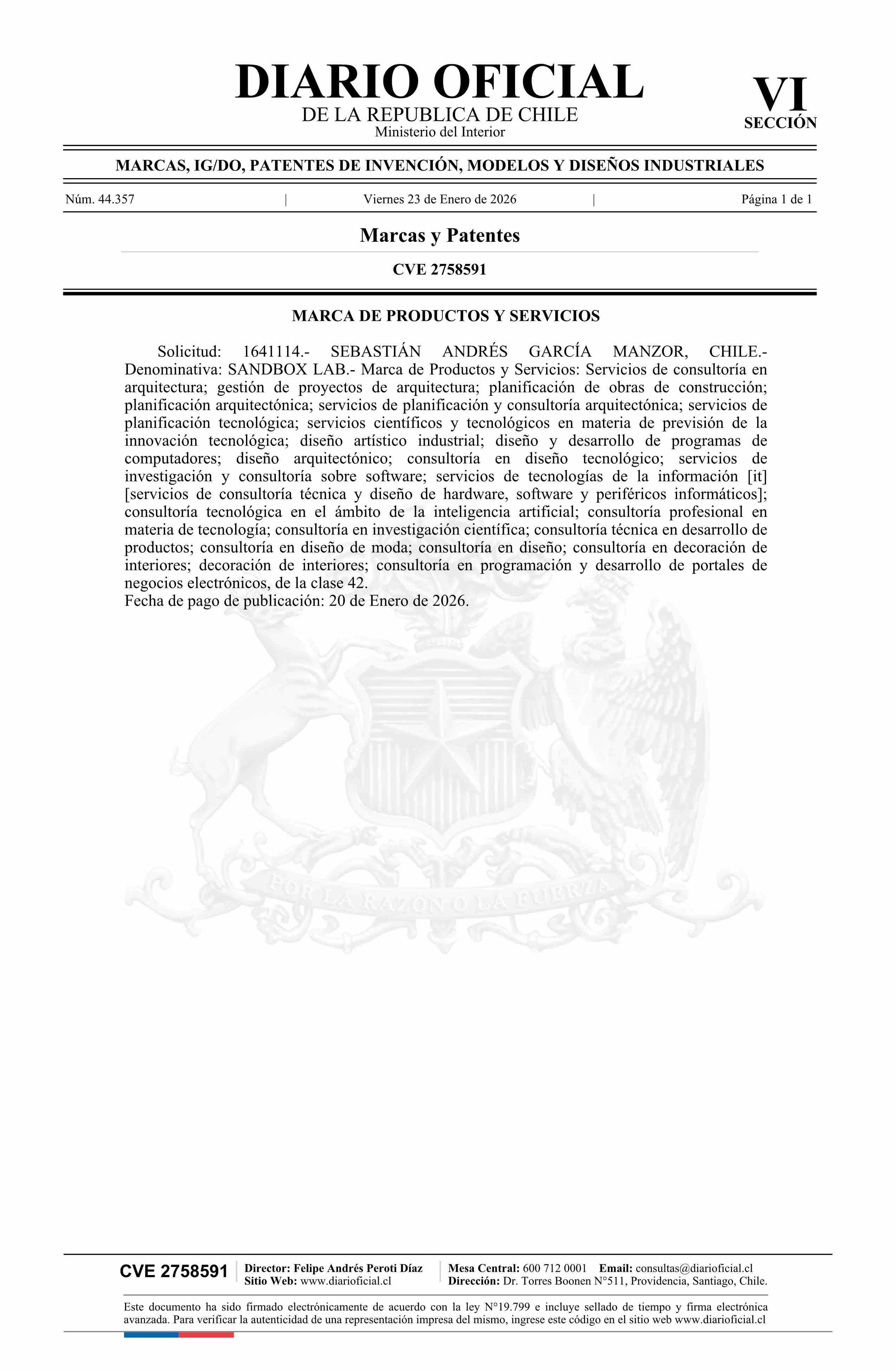 Título: Solicitud número 1641114.- SANDBOX LAB
