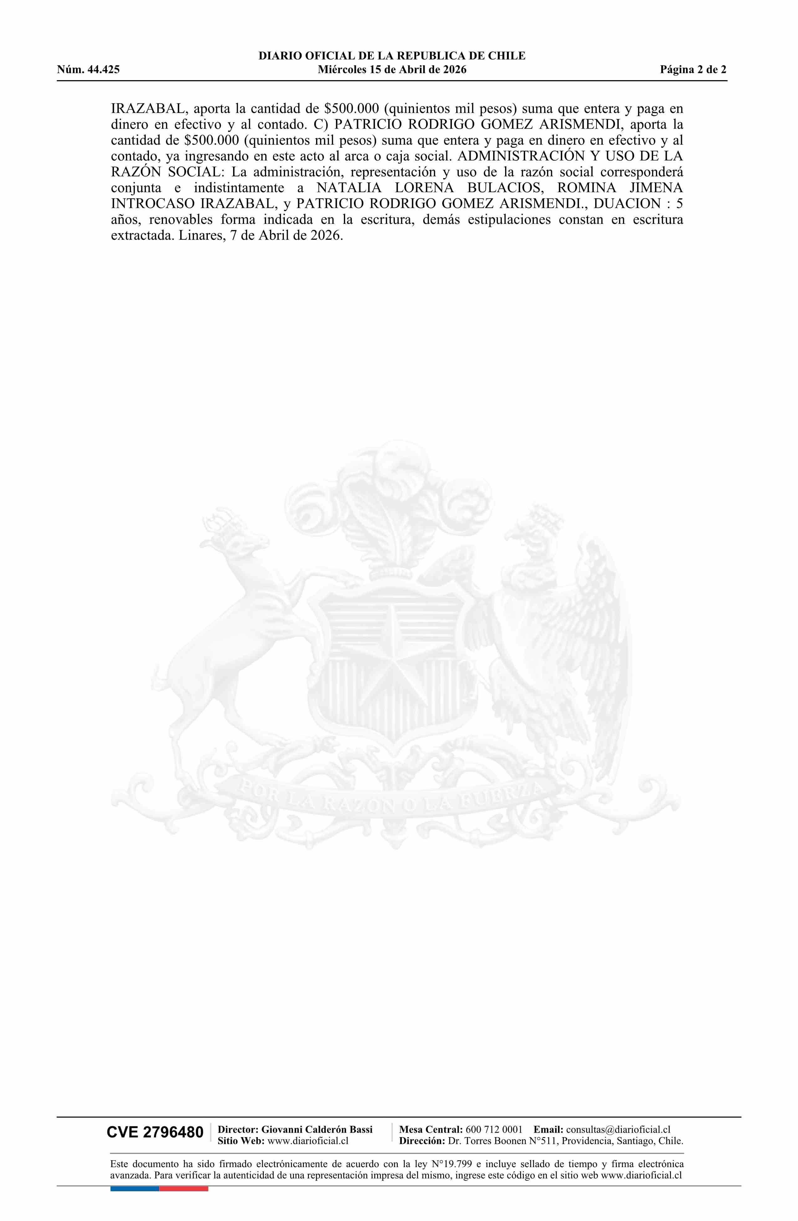 SERVICIOS DE TURISMO INCLUTUR LIMITADA 15-04-2026 Diario Oficial Edición Electrónica |