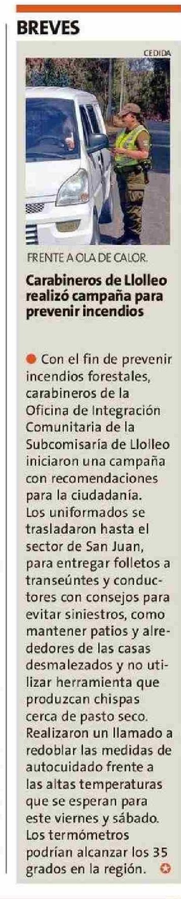 | Título: | Carabineros de Llolleo realizó campaña para prevenir incendios |