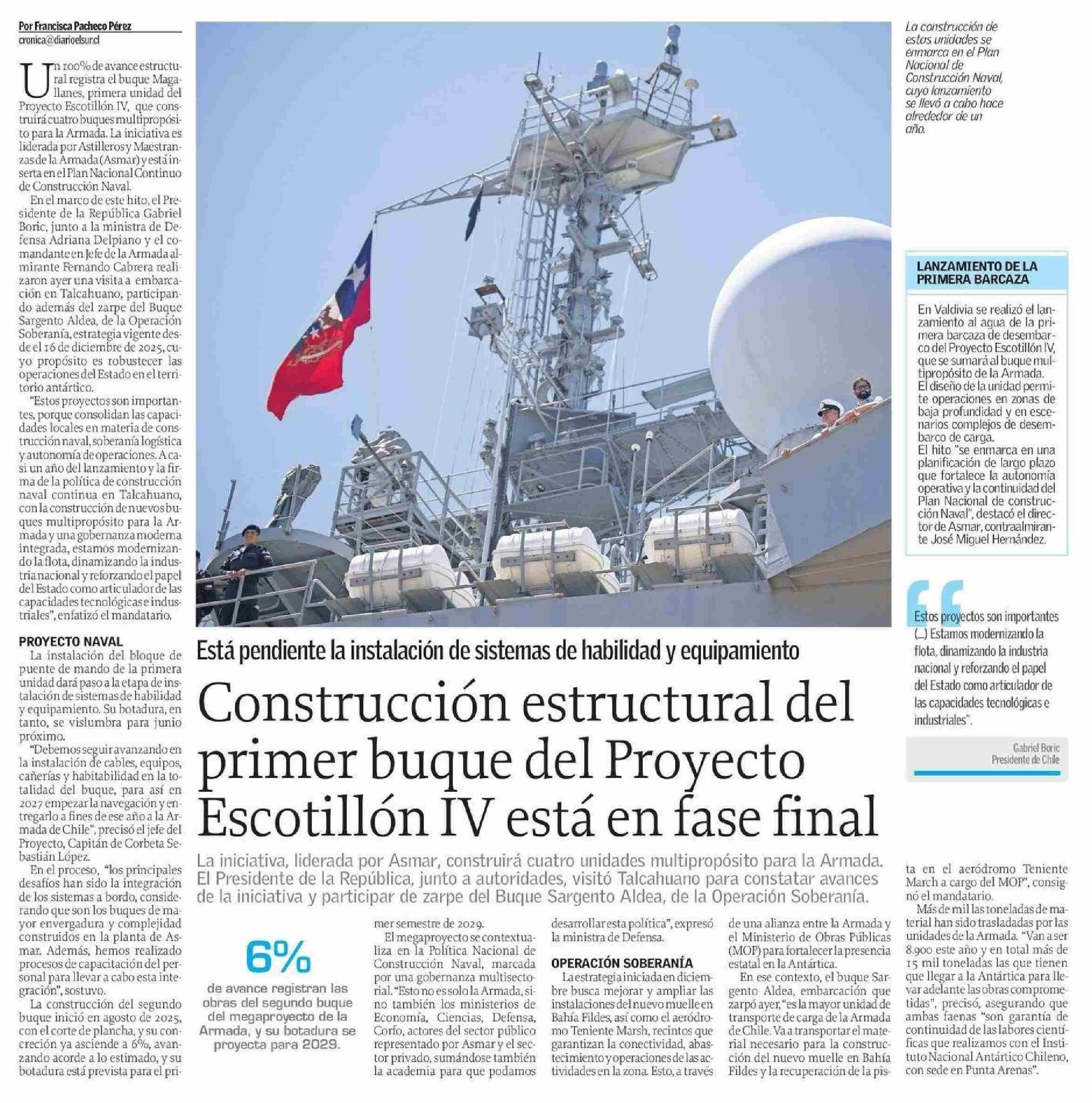 Construcción estructural del primer buque del Proyecto Escotillón IV está en fase final 15-01-2026 El Sur |