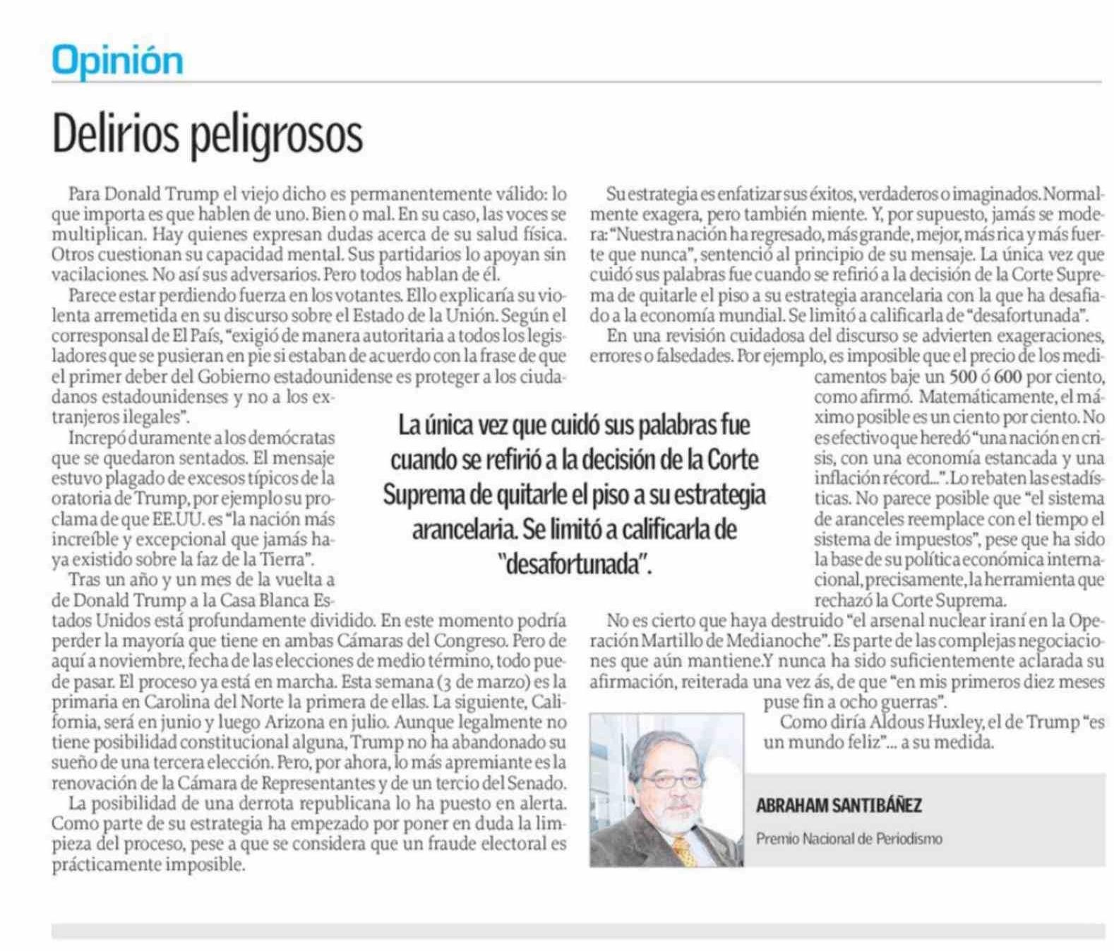 COLUMNAS DE OPINIÓN: Delirios peligrosos 02-03-2026 El Sur |