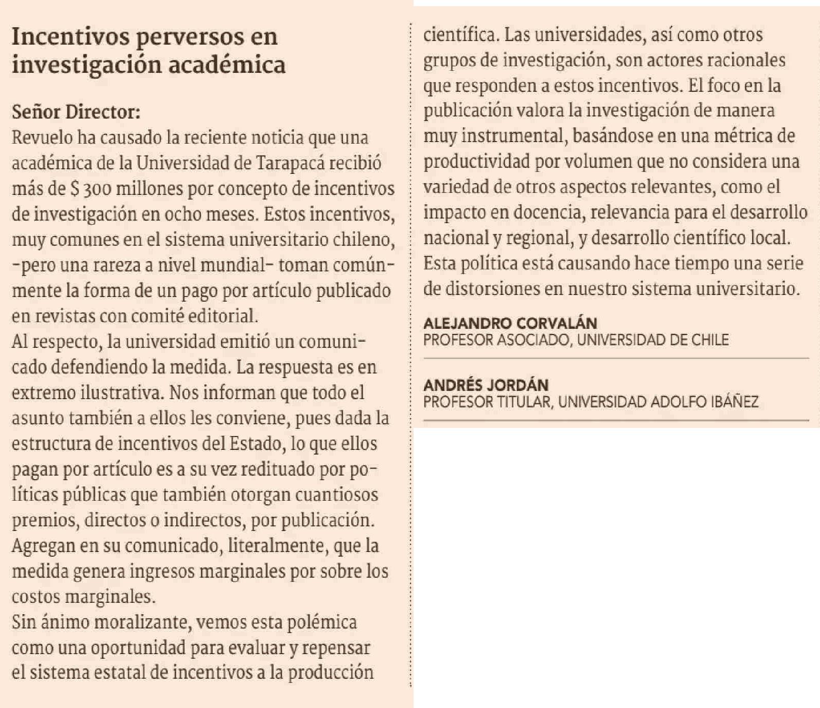 CARTAS: Incentivos perversos en investigación académica