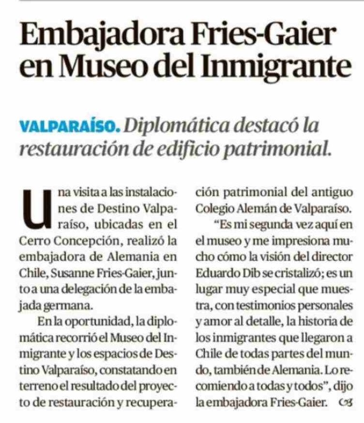 Embajadora Fries-Gaier en Museo del Inmigrante 22-02-2026 El Mercurio de Valparaíso |