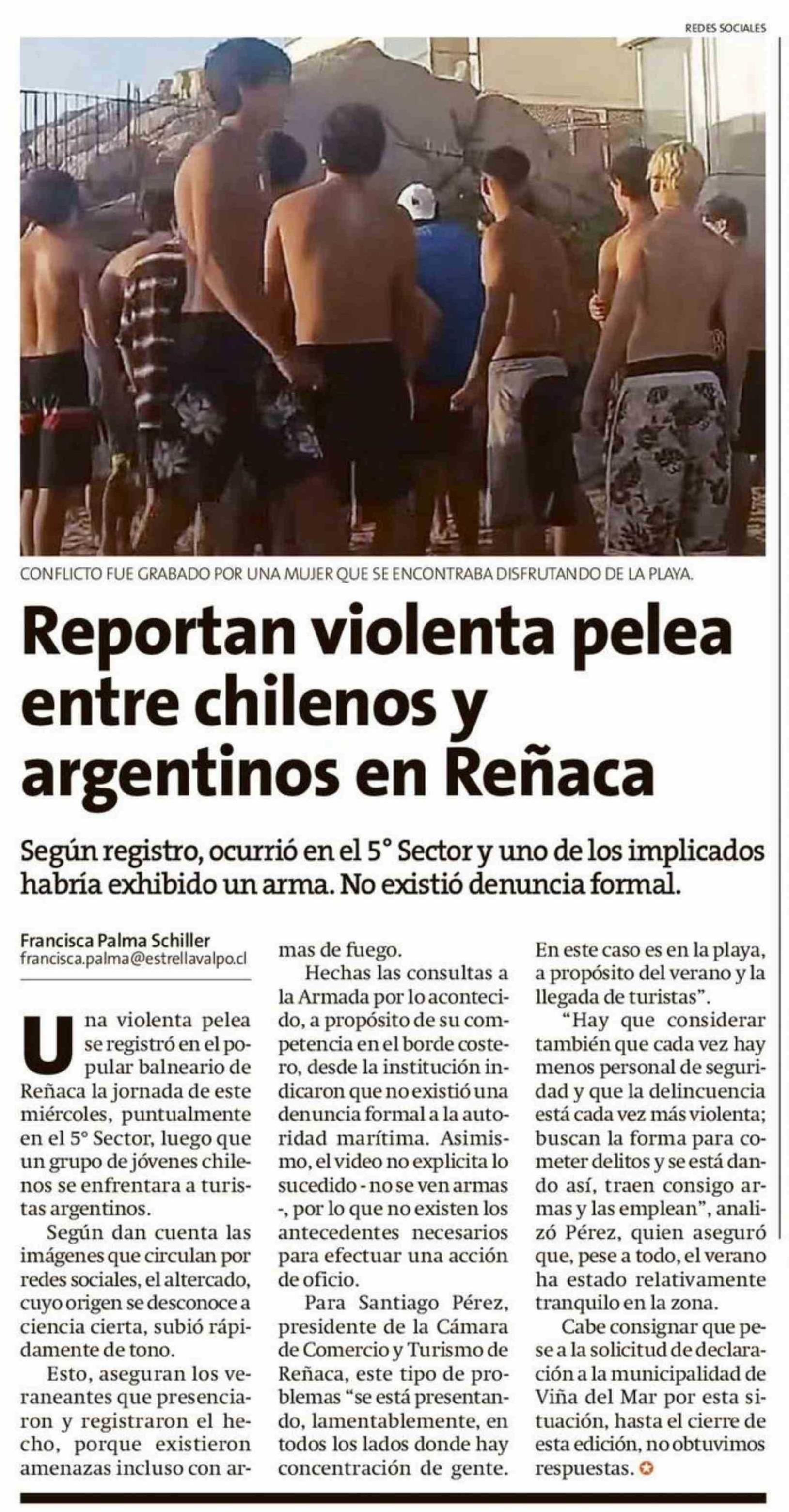 Reportan violenta pelea entre chilenos y argentinos en Reñaca 23-01-2026 La Estrella de Valparaíso |