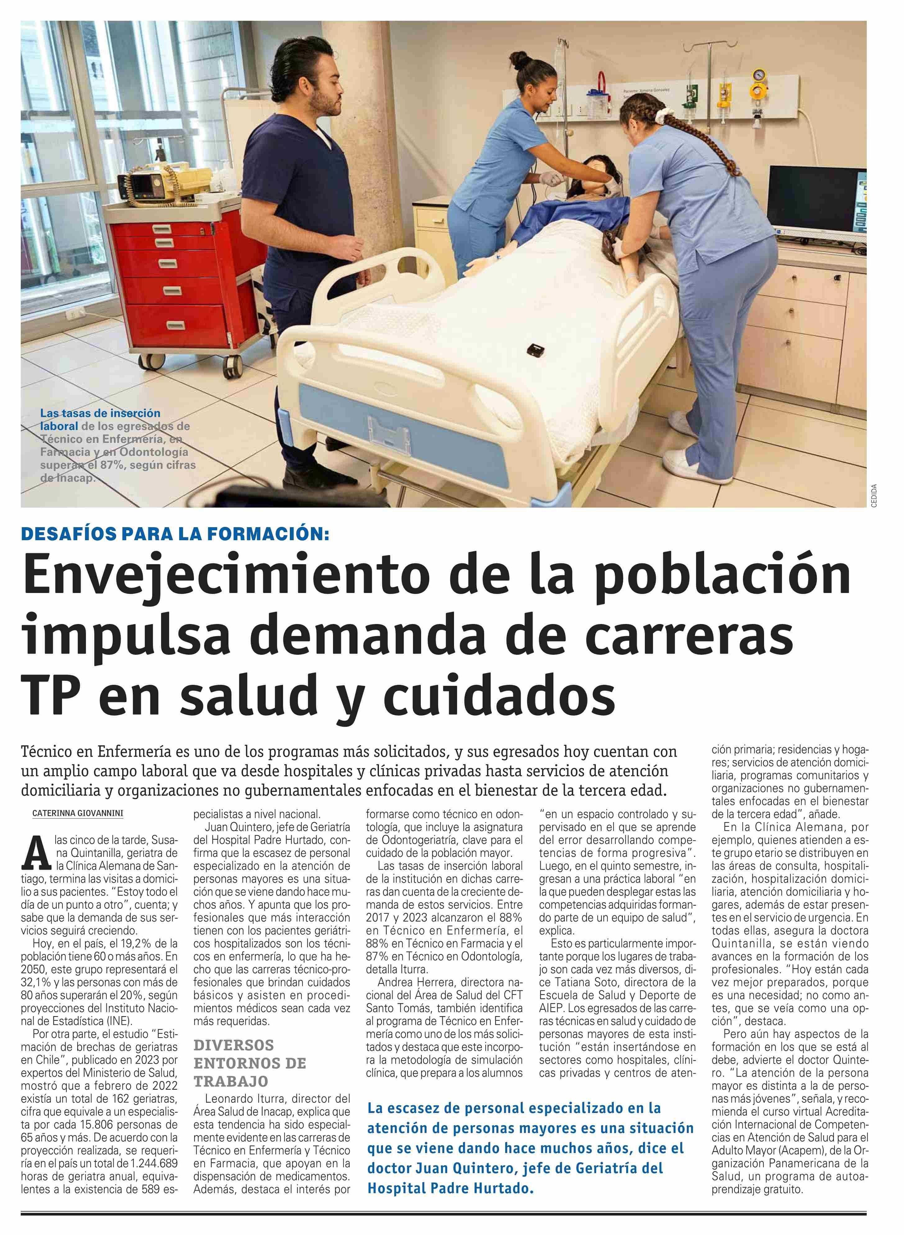 Envejecimiento de la población impulsa demanda de carreras TP en salud y cuidados 24-04-2025 El Mercurio |