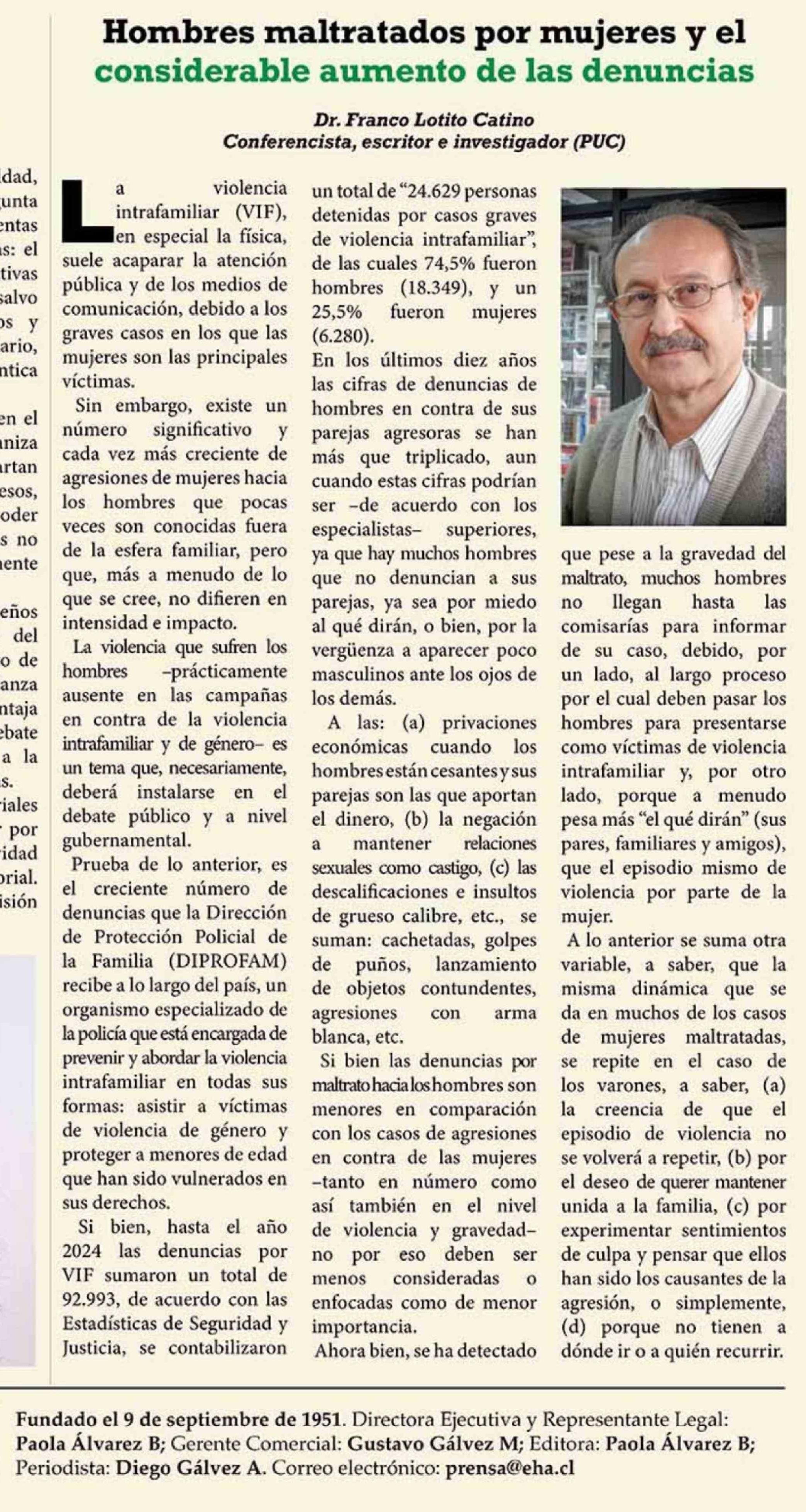 Título: Columnas de Opinión: Hombres maltratados por mujeres y el considerable aumento de las denuncias
