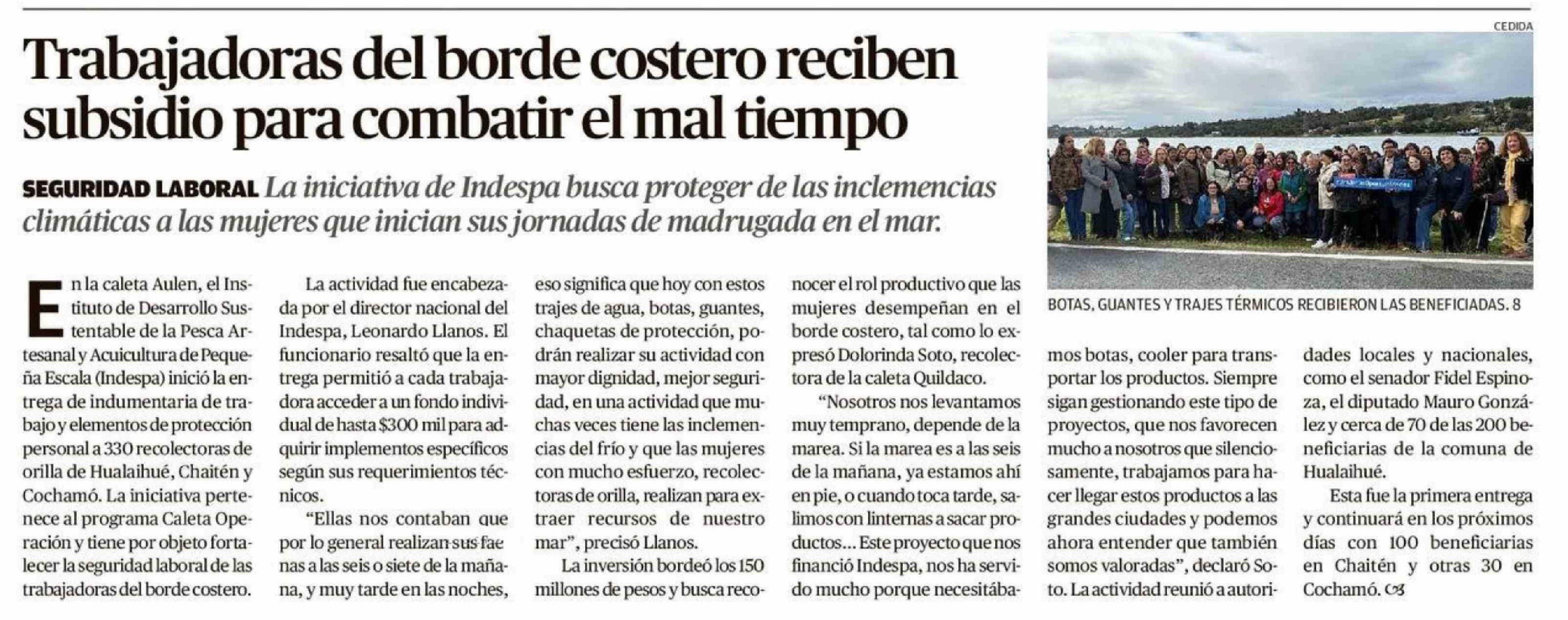 Trabajadoras del borde costero reciben subsidio para combatir el mal tiempo 21-04-2026 El Llanquihue |