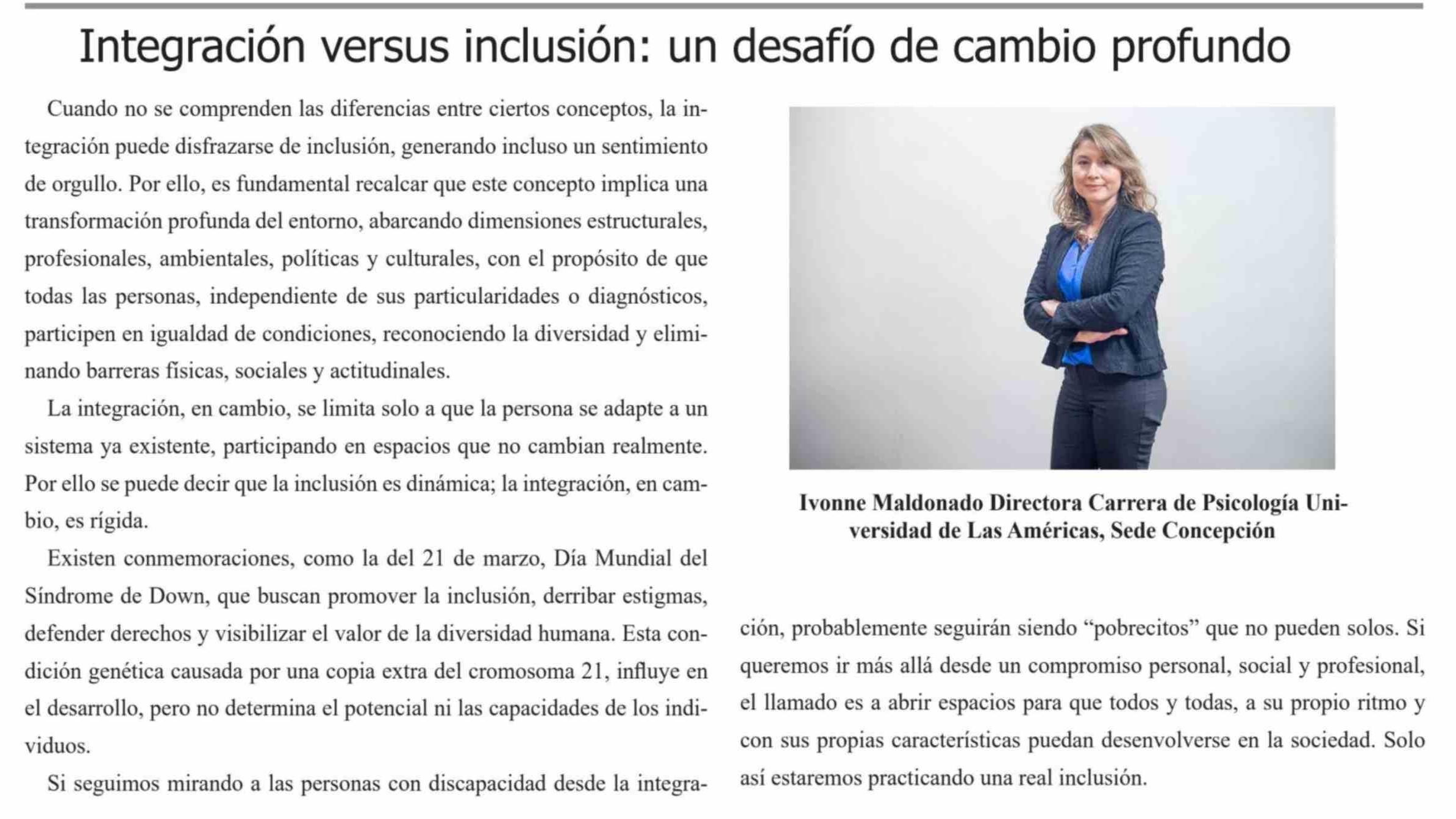 Columnas de Opinión: Integración versus inclusión: un desafío de cambio profundo