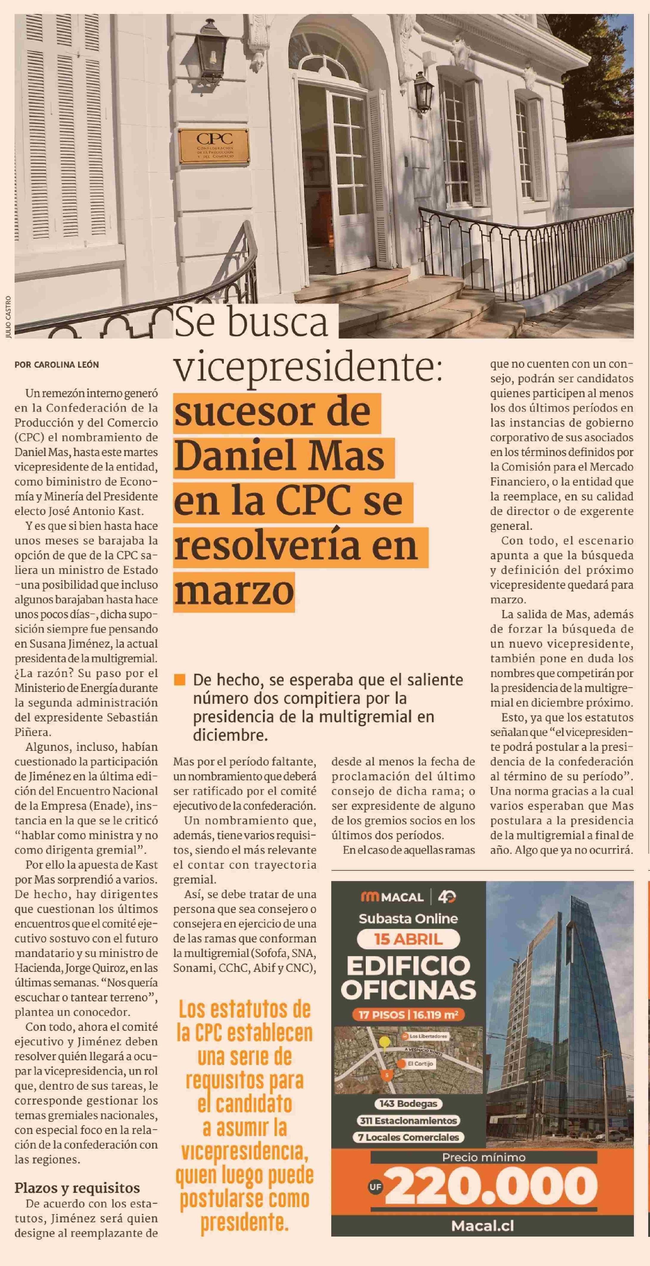 Título: Se busca vicepresidente: sucesor de Daniel Mas en la CPC se resolvería en marzo