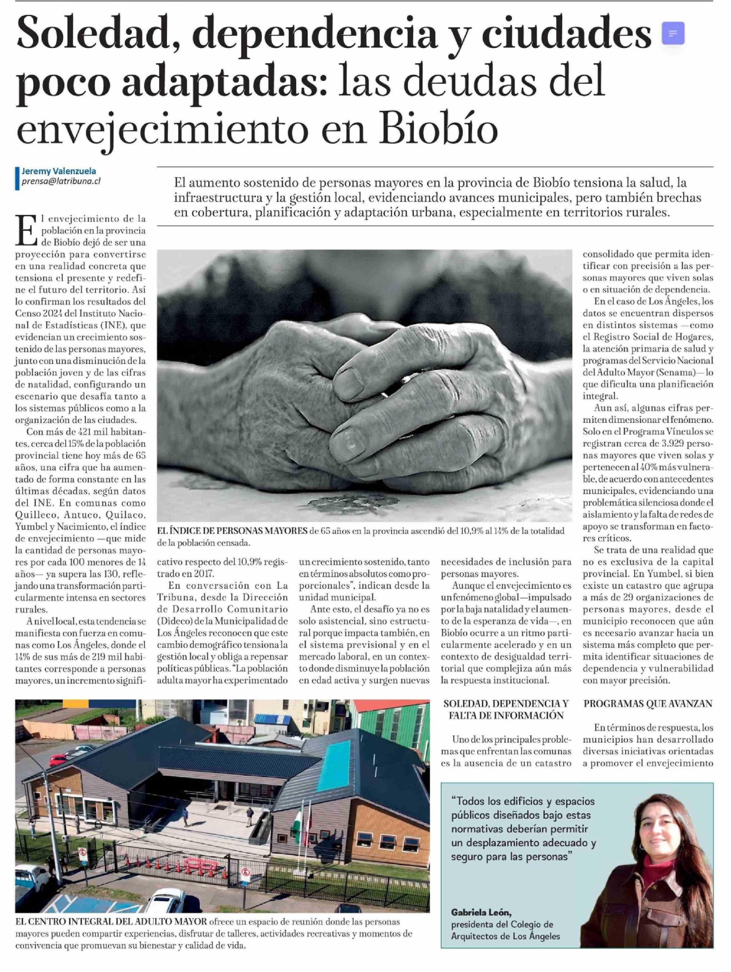 Soledad, dependencia y ciudades poco adaptadas: las deudas del envejecimiento en Biobío 11-04-2026 La Tribuna |