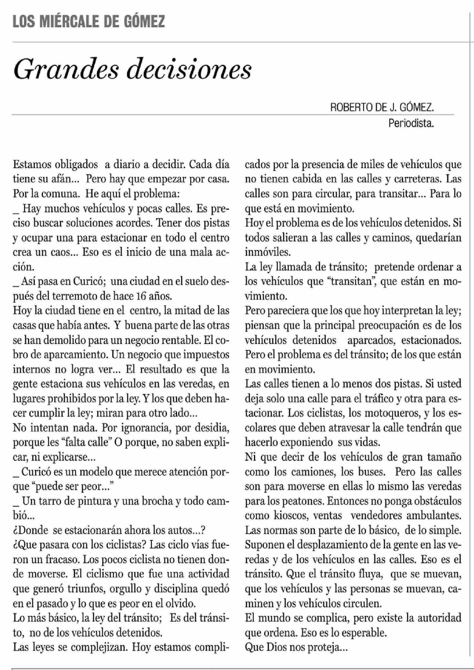 Fuente: La Prensa de Curicó (La Prensa de Curicó) Página(s): 9