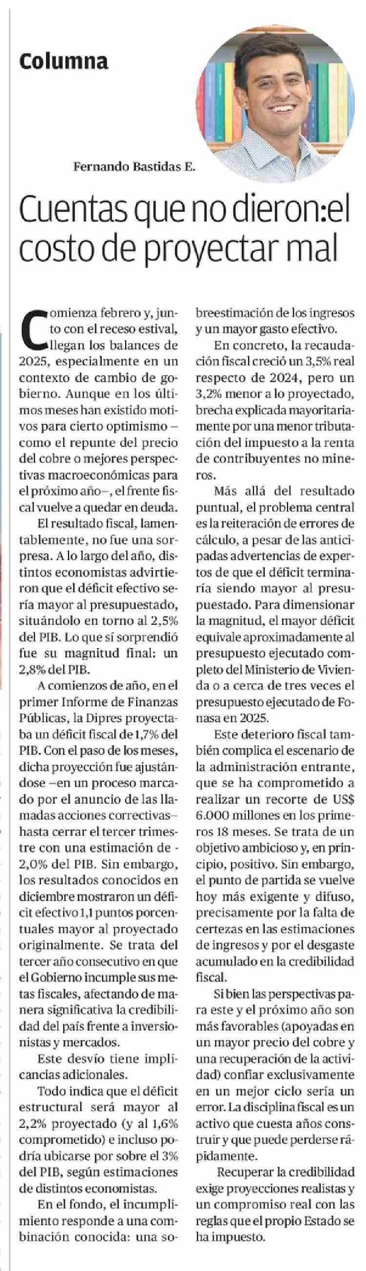 Columnas de Opinión: Cuentas que no dieron:el costo de proyectar mal 08-02-2026 Diario Austral Región de Los Ríos |