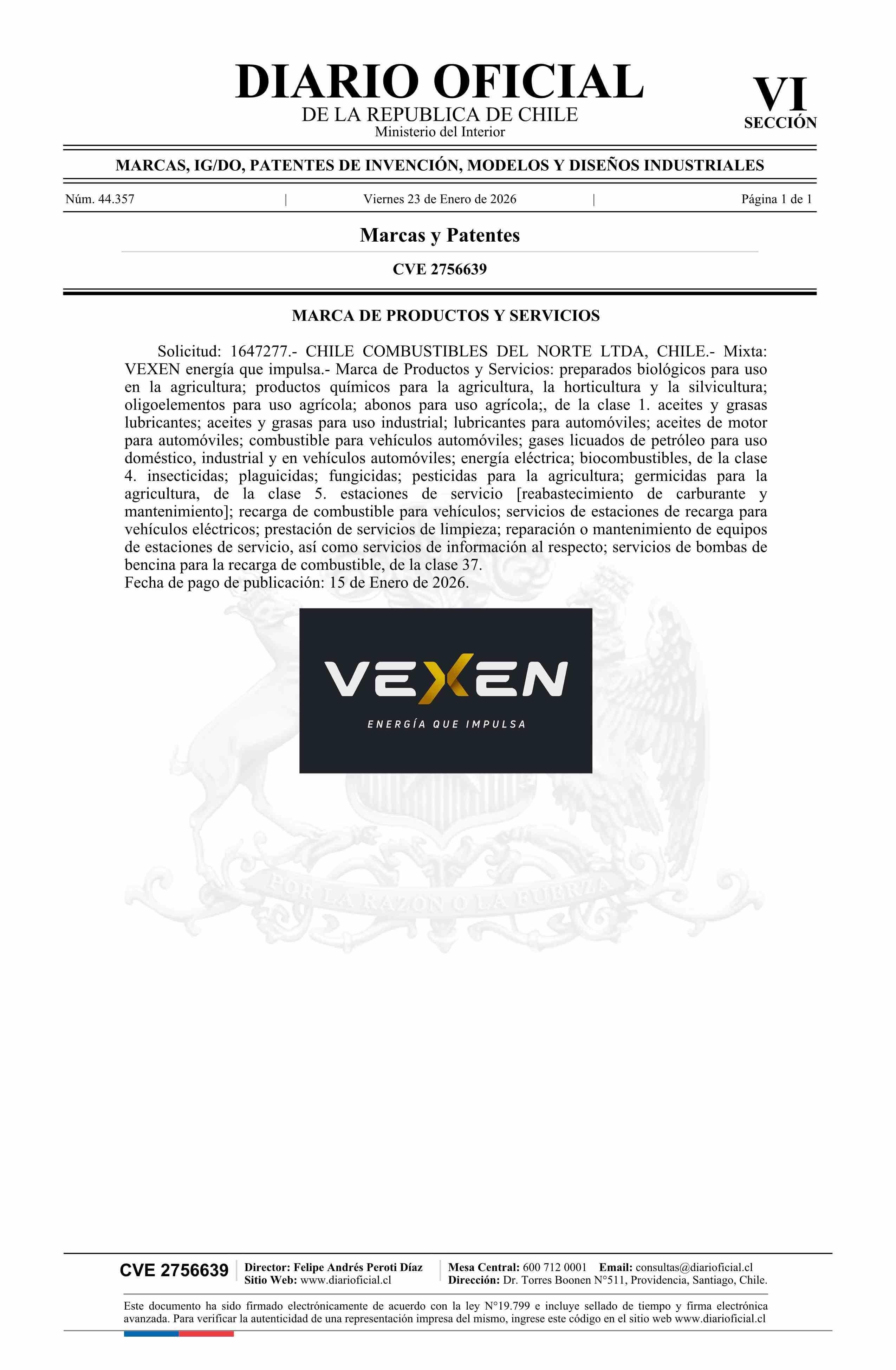 Solicitud número 1647277.- VEXEN energía que impulsa