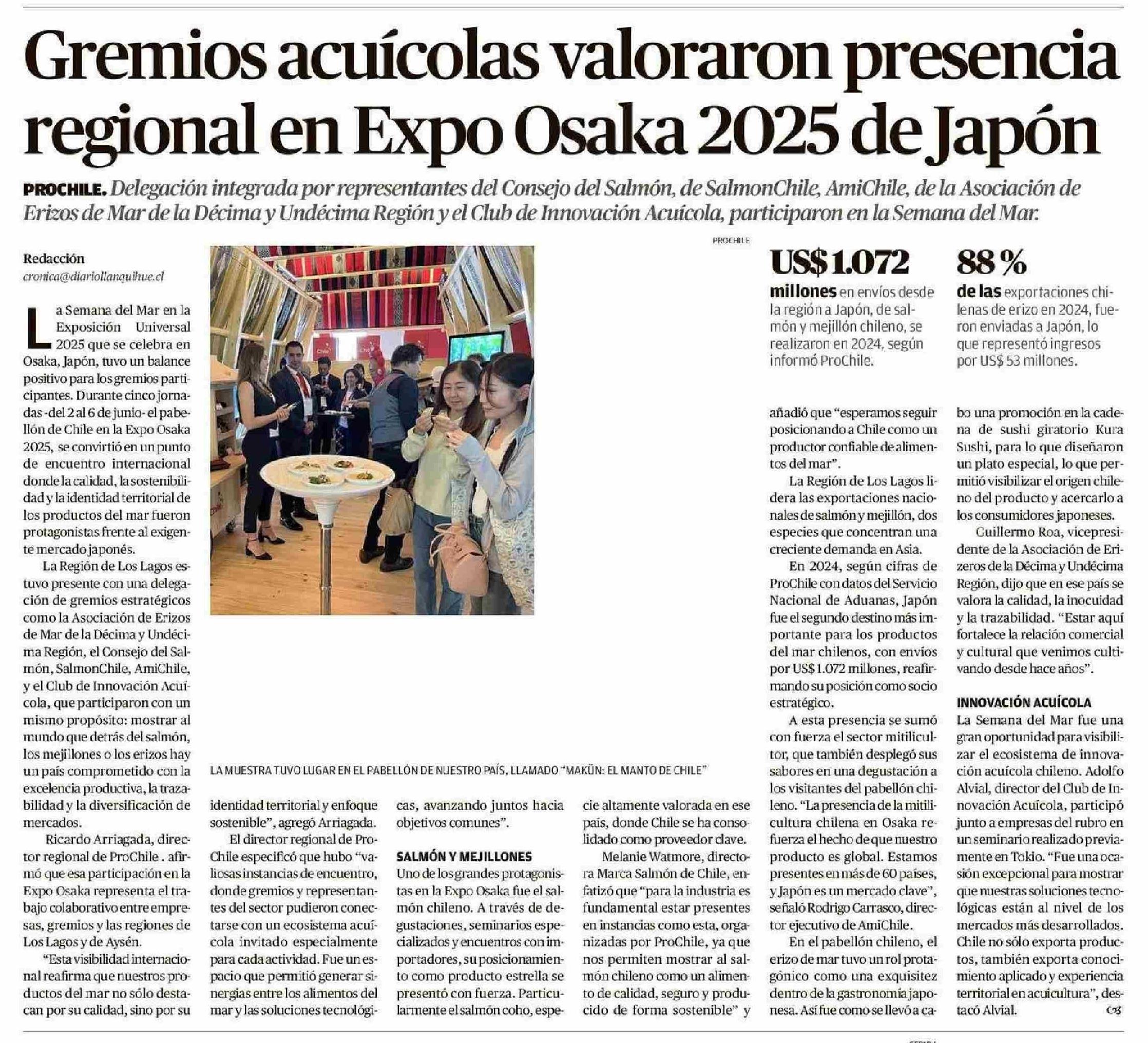 Gremios acuícolas valoraron presencia regional en Expo Osaka 2025 de Japón 21-06-2025 El Llanquihue |