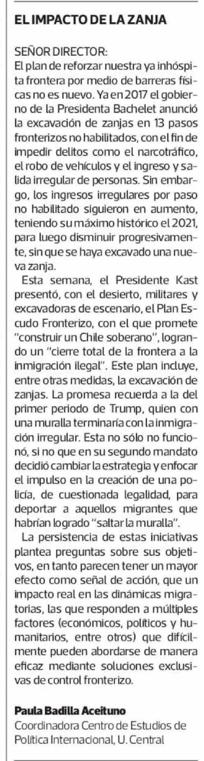 Cartas: EL IMPACTO DE LA ZANJA