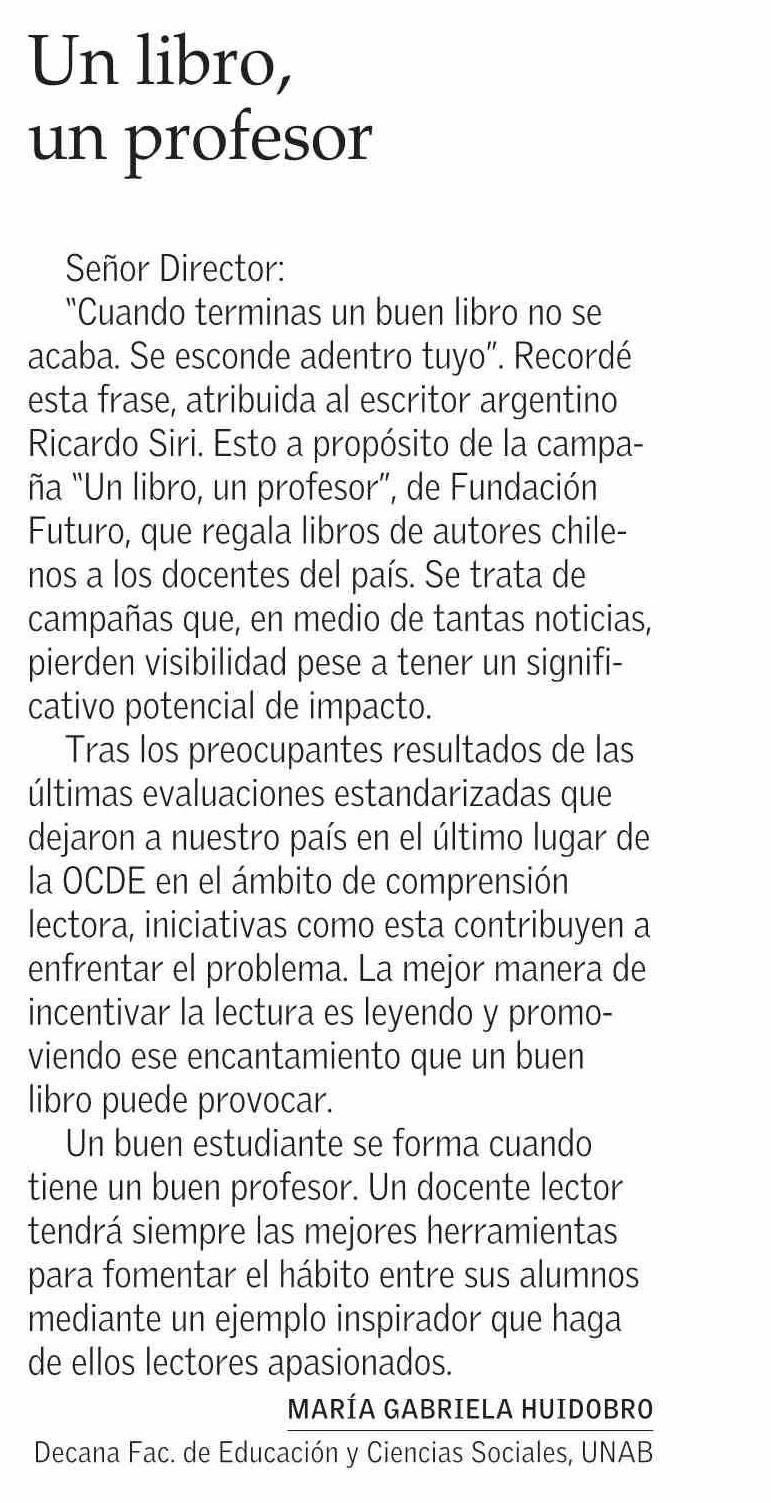 Un libro, un profesor 08-01-2025 El Mercurio |