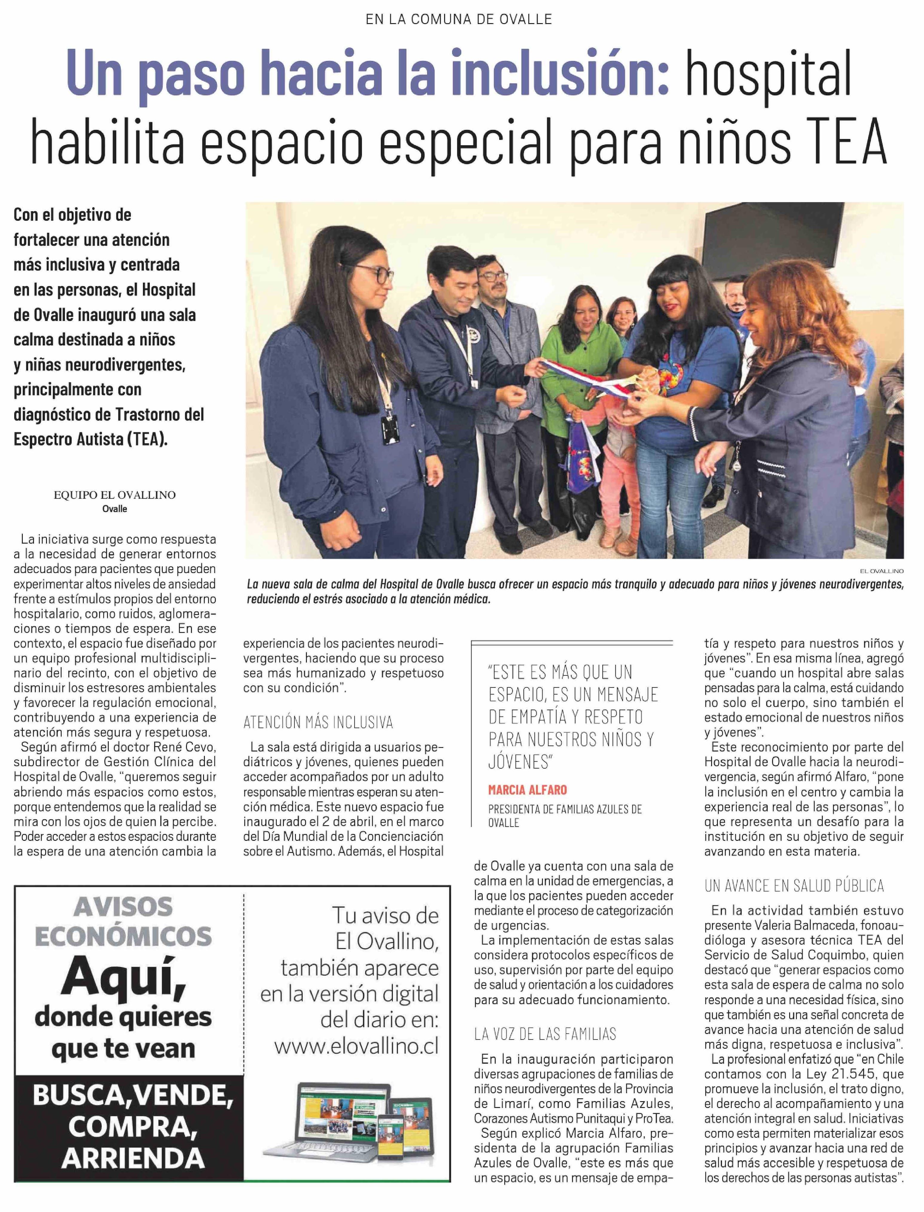 Un paso hacia la inclusión: hospital habilita espacio especial para niños TEA 08-04-2026 El Ovallino |