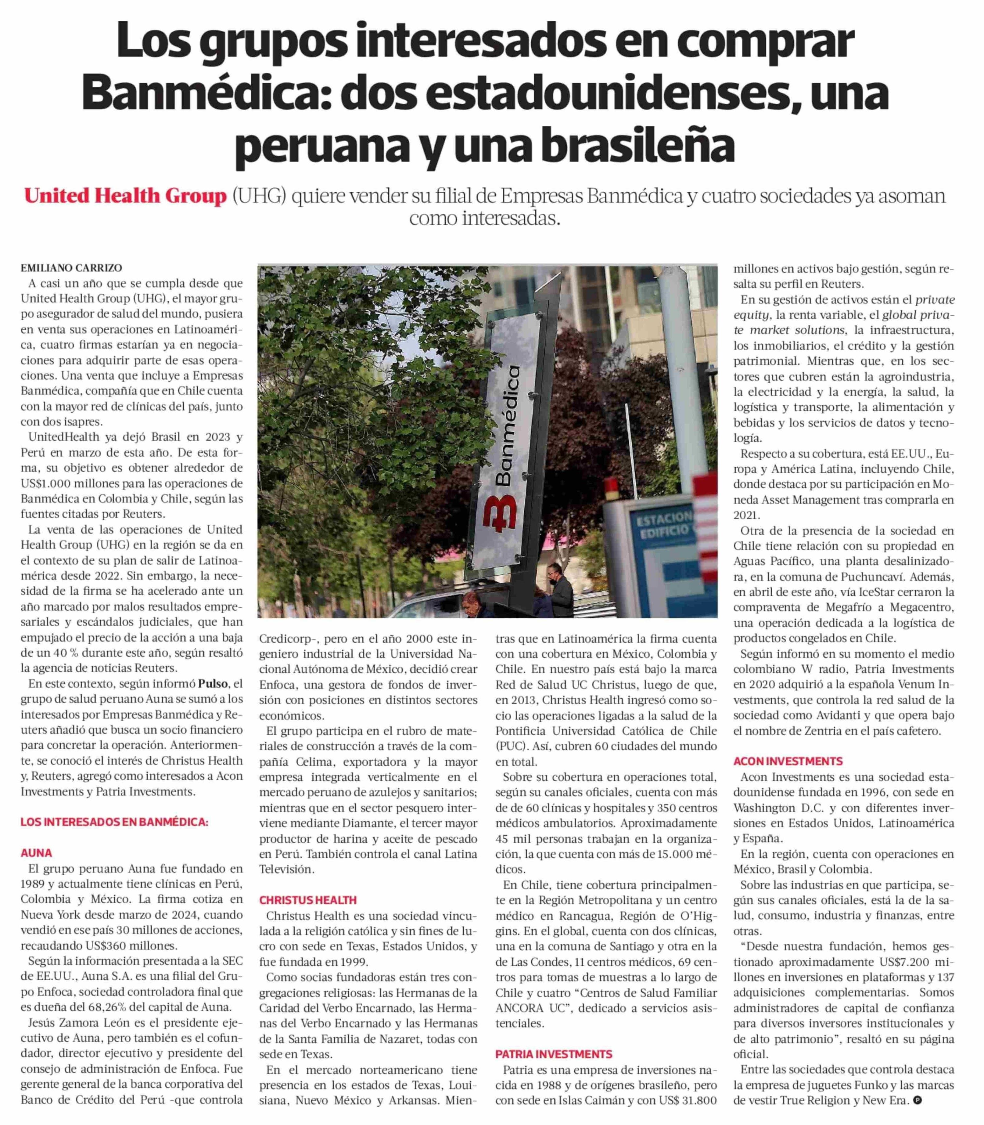 Título: Los grupos interesados en comprar Banmédica: dos estadounidenses, una peruana y una brasileña