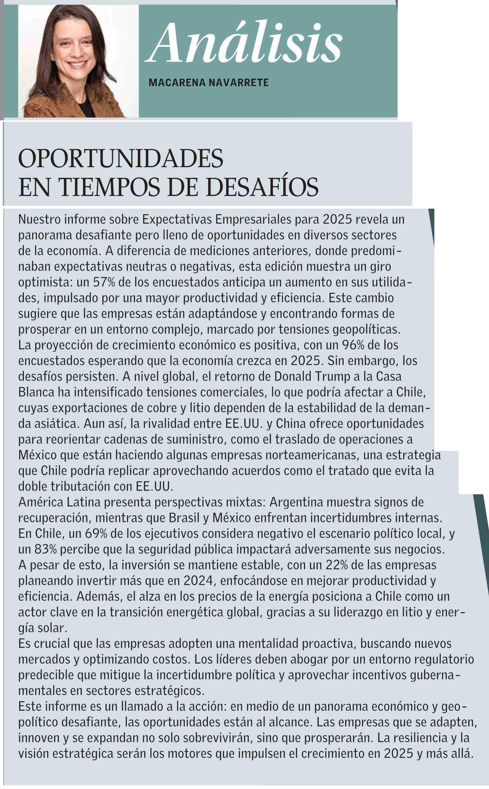 OPORTUNIDADES EN TIEMPOS DE DESAFÍOS 06-02-2025 El Mercurio |