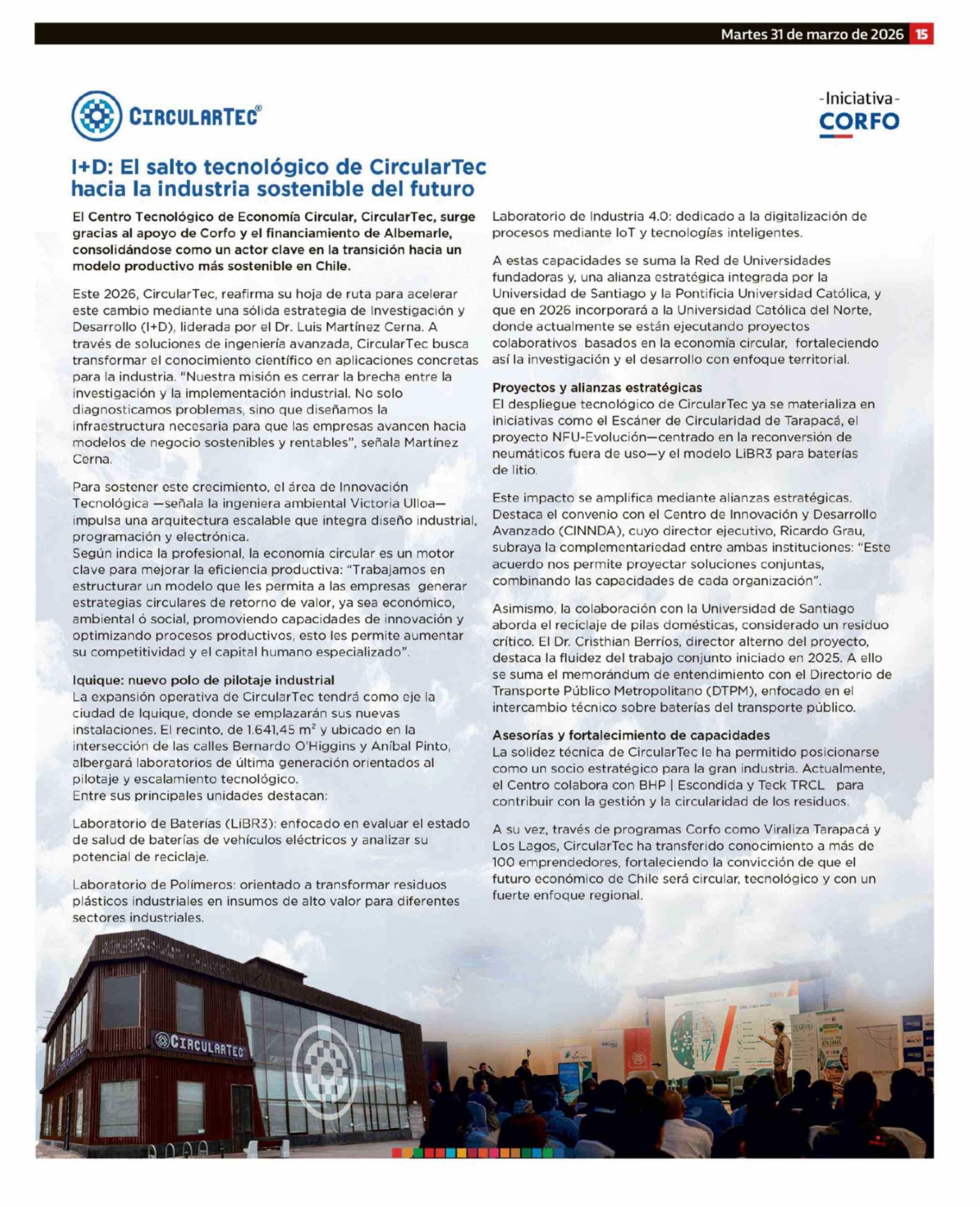 1+D: El salto tecnológico de CircularTec hacia la industria sostenible del futuro 31-03-2026 El Mercurio de Antofagasta |