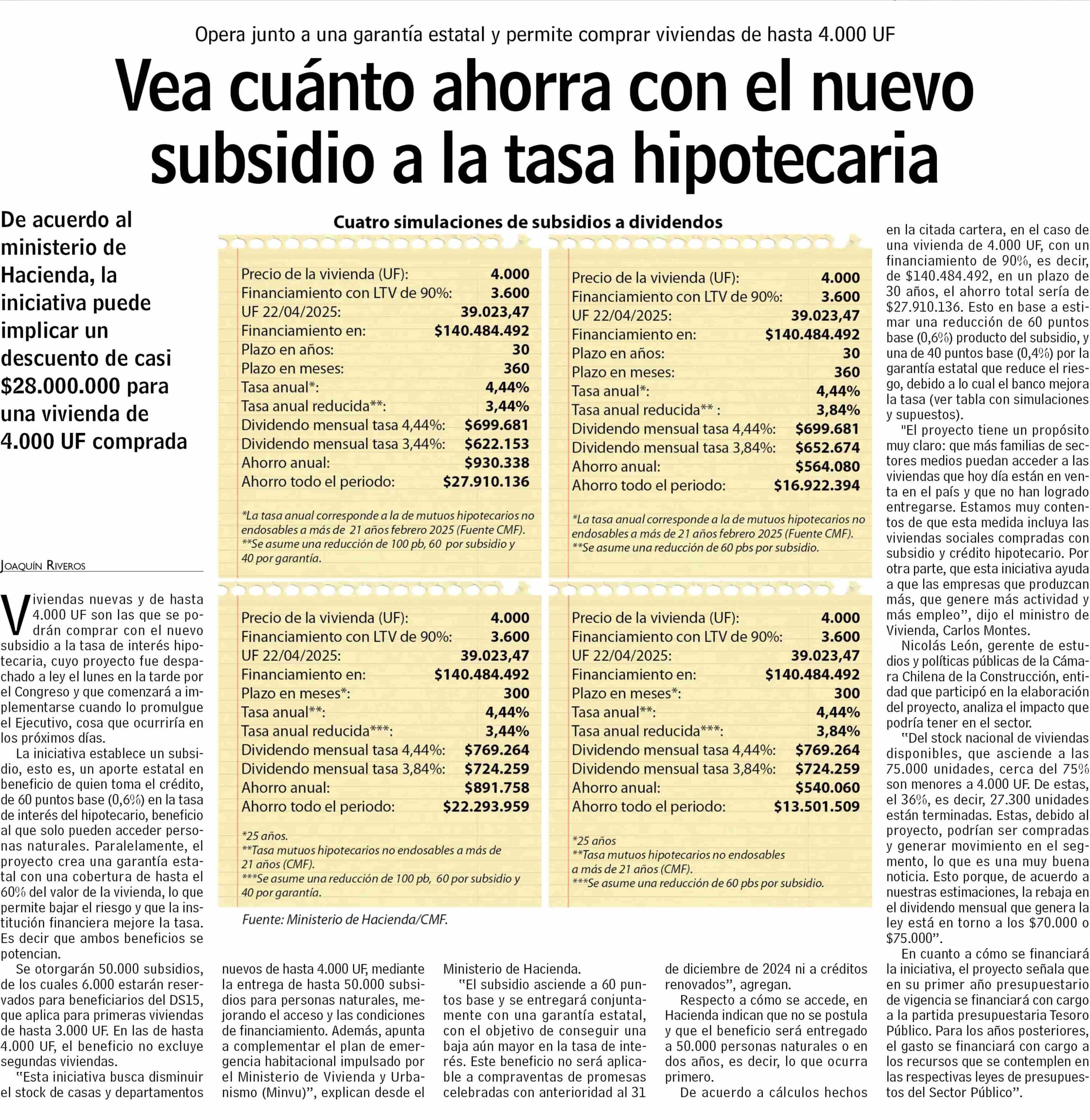 Título: Vea cuánto ahorra con el nuevo subsidio a la tasa hipotecaria