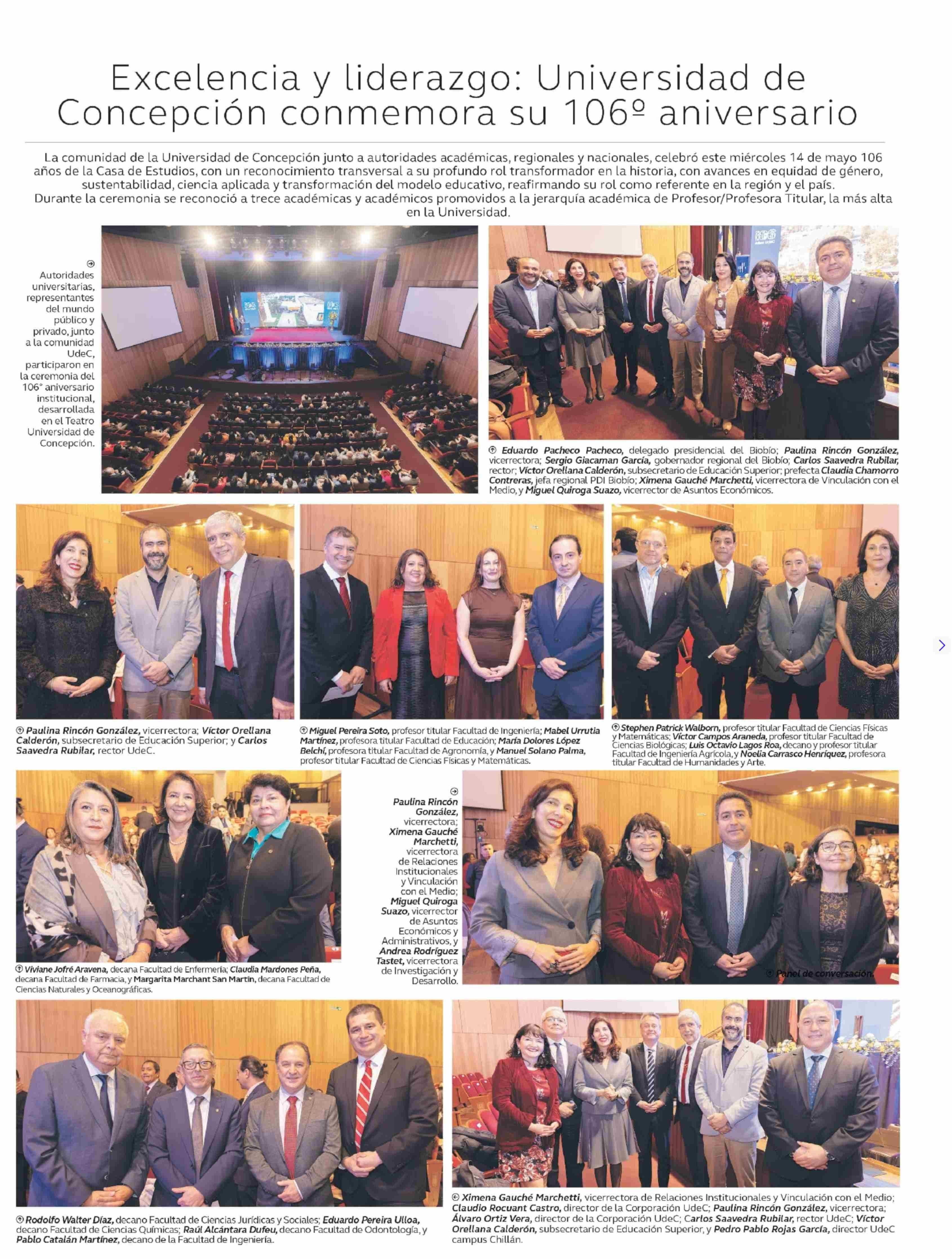 Excelencia y liderazgo: Universidad de Concepción conmemora su 1068 aniversario 18-05-2025 La Tercera |