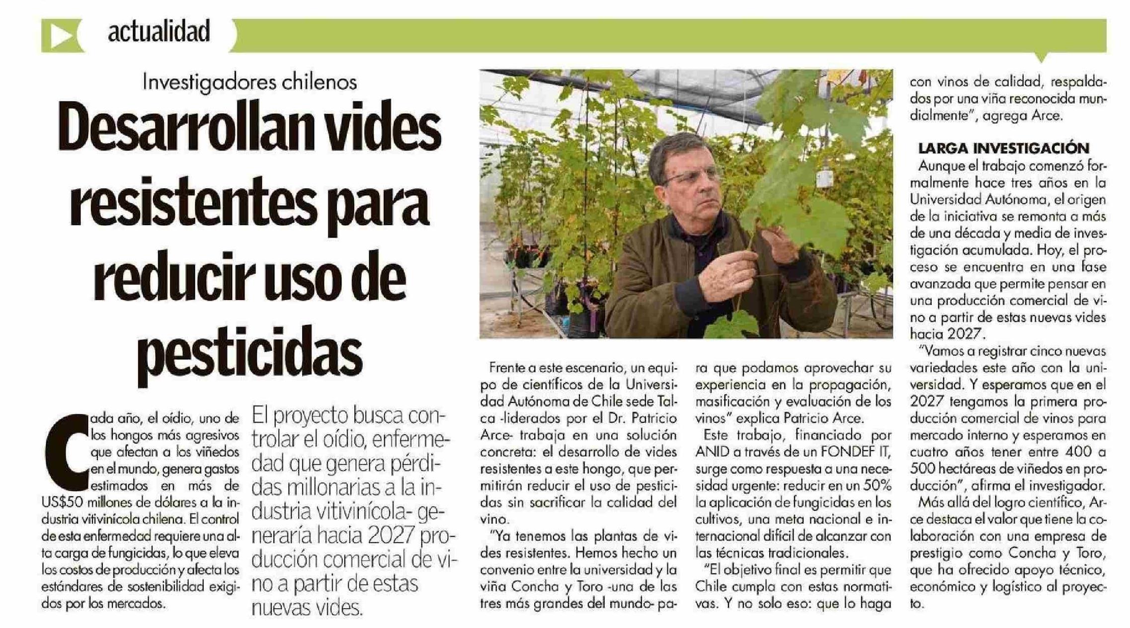 Título: Desarrollan vides resistentes para reducir uso de pesticidas