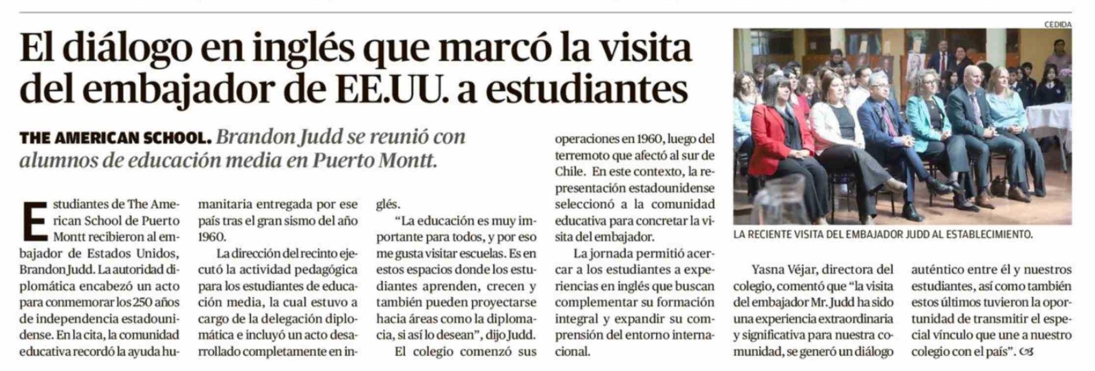 El diálogo en inglés que marcó la visita del embajador de EE.UU. a estudiantes 02-04-2026 El Llanquihue |