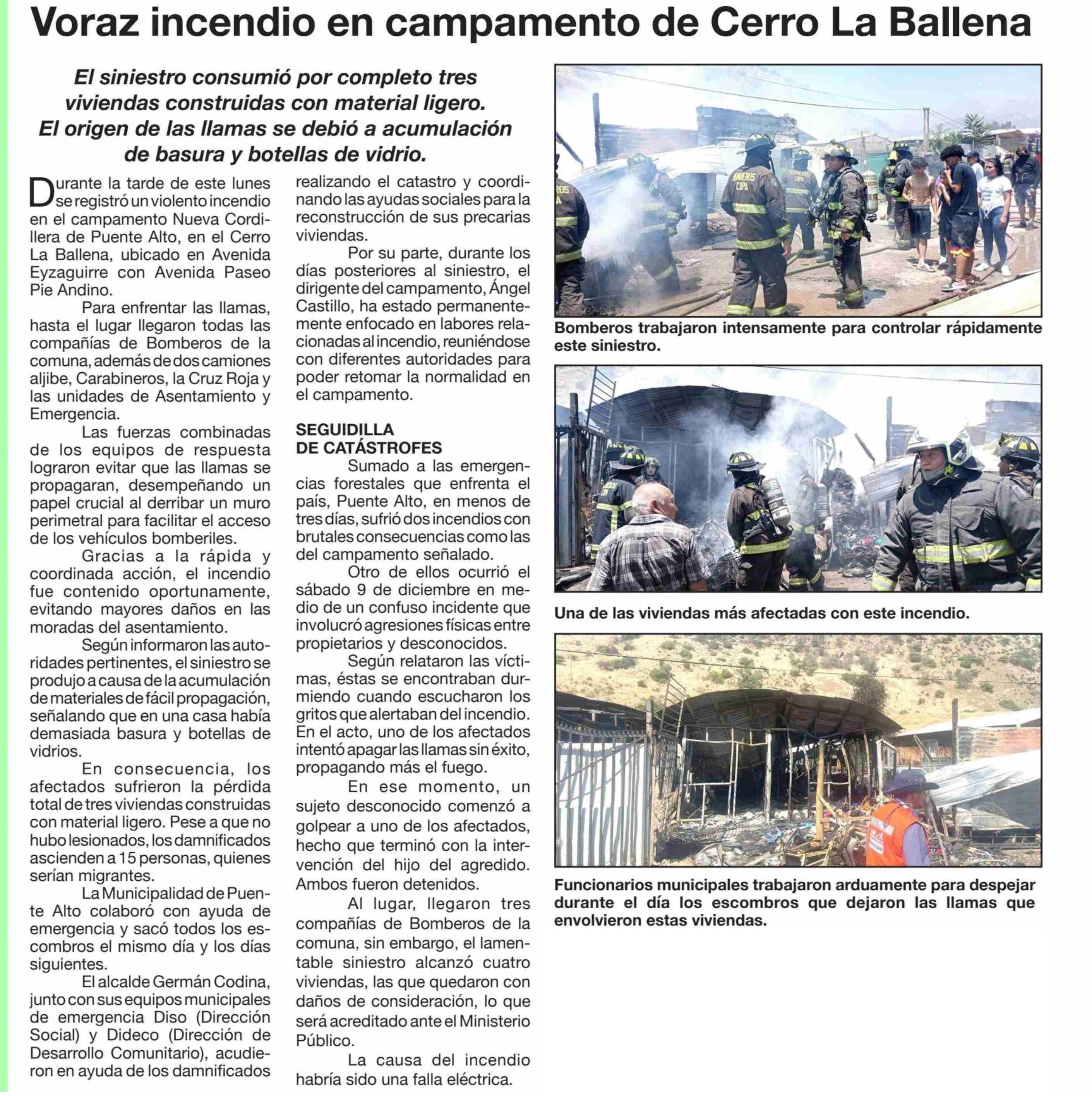 | Título: | Voraz incendio en campamento de Cerro La Ballena |