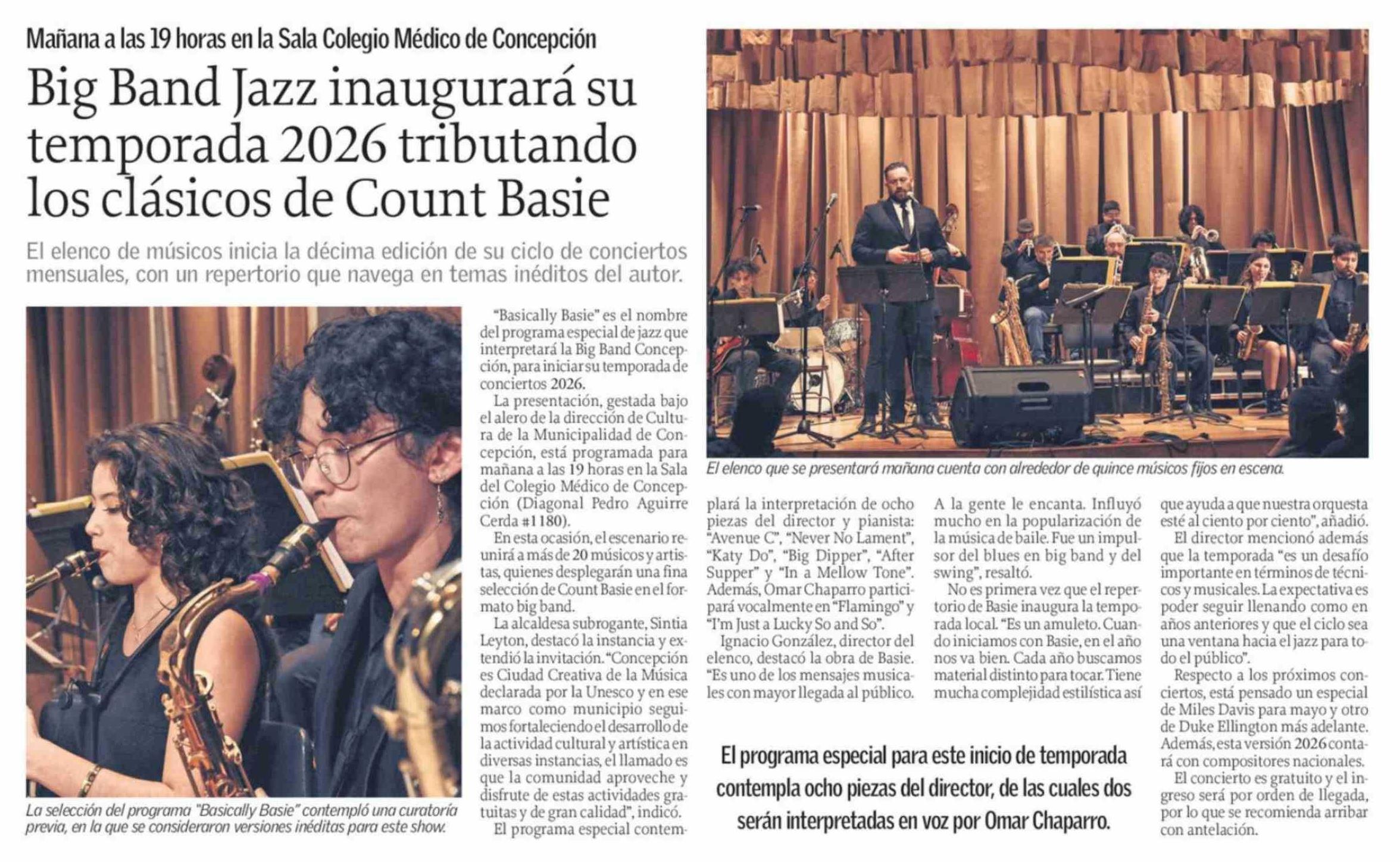 | Título: | Big Band Jazz inaugurará su temporada 2026 tributando los clásicos de Count Basie |