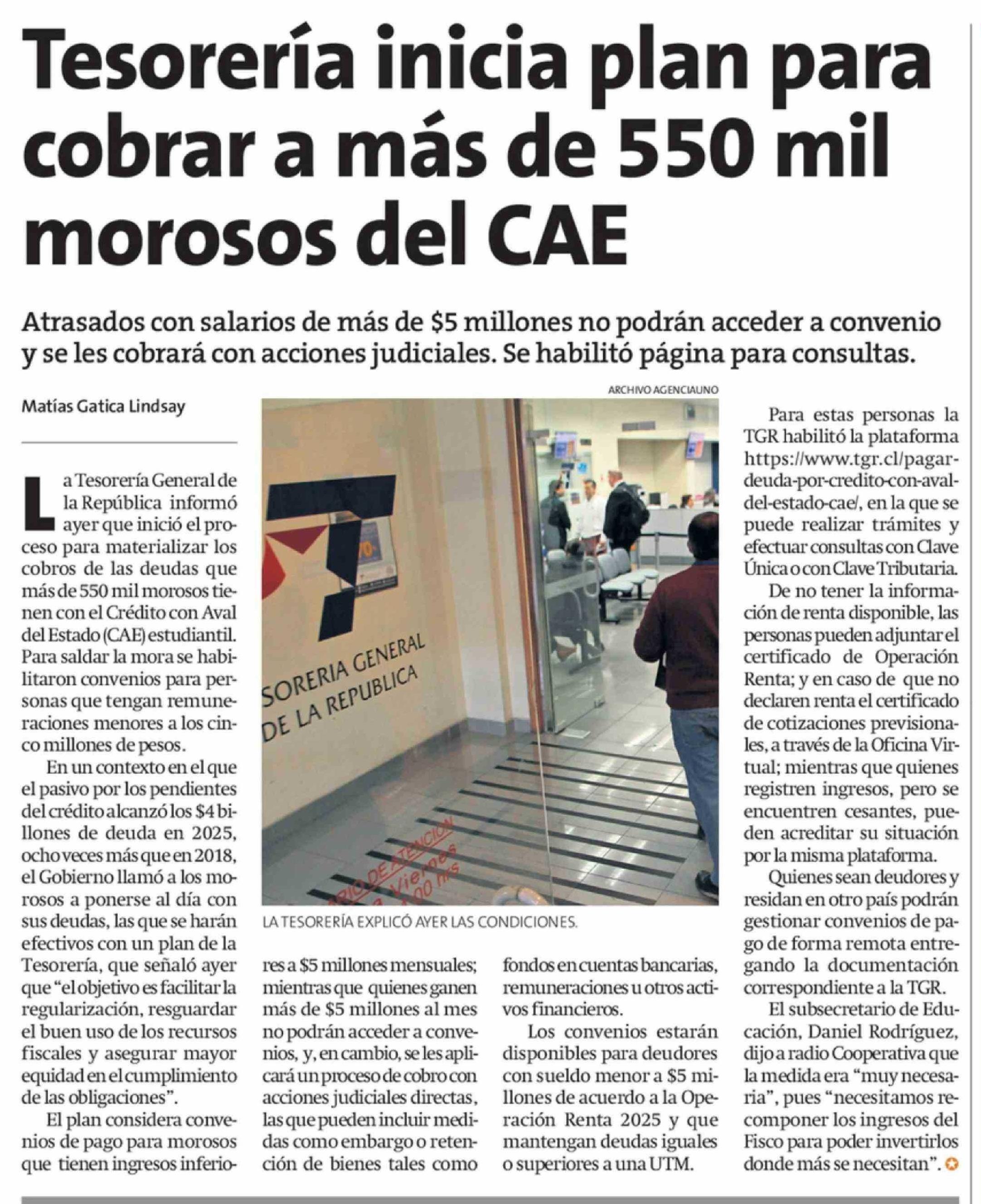 Tesorería inicia plan para cobrar a más de 550 mil morosos del CAE 07-04-2026 La Estrella de Iquique |