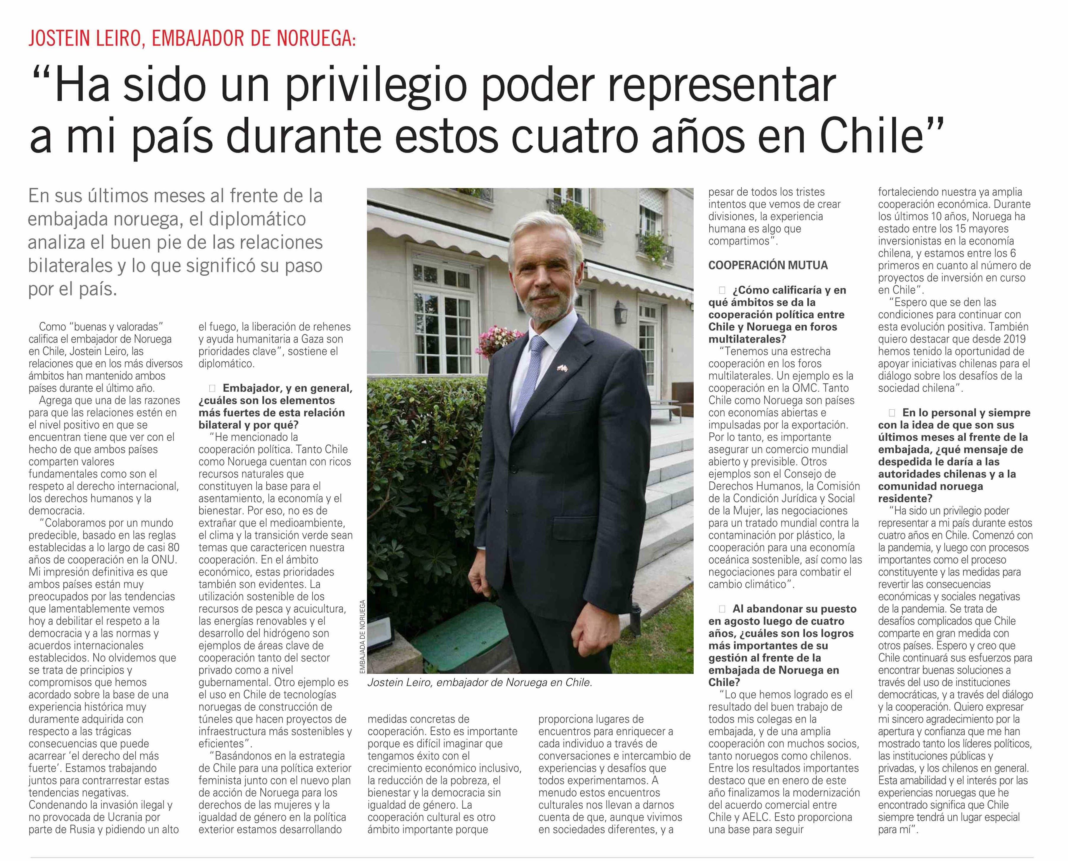 Título: "Ha sido un privilegio poder representar a mi país durante estos cuatro años en Chile"