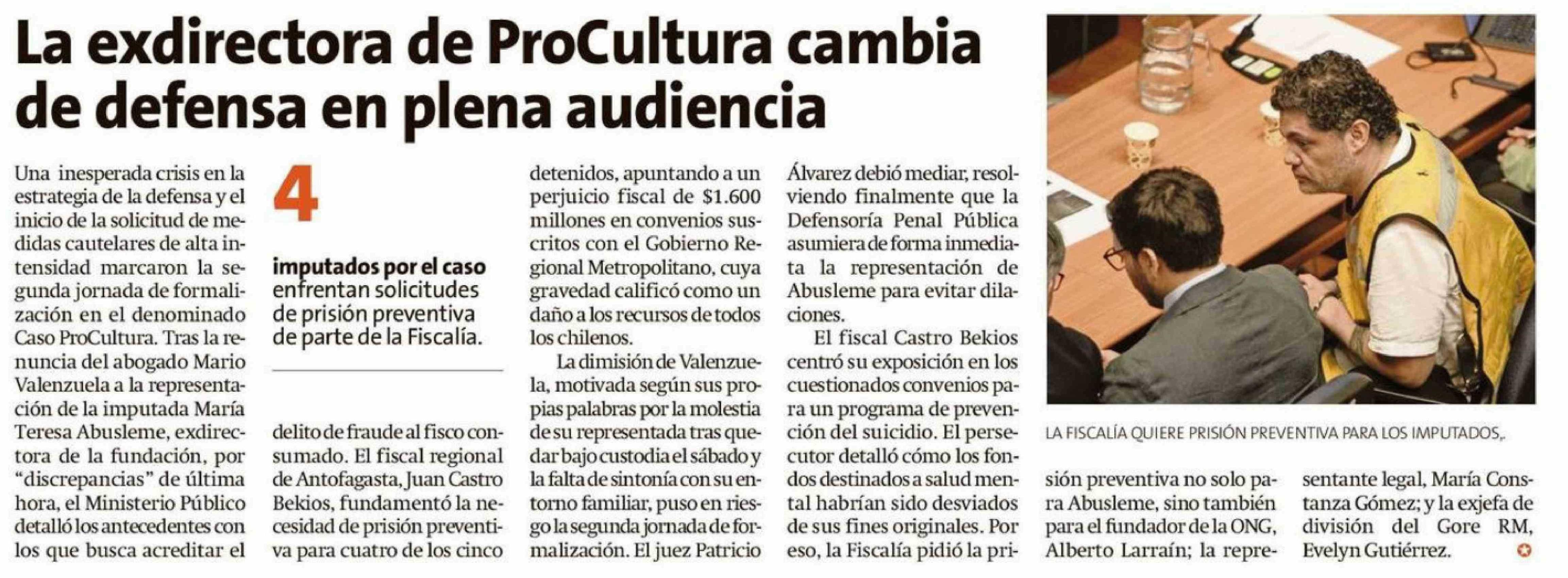 Título: La exdirectora de ProCultura cambia de defensa en plena audiencia