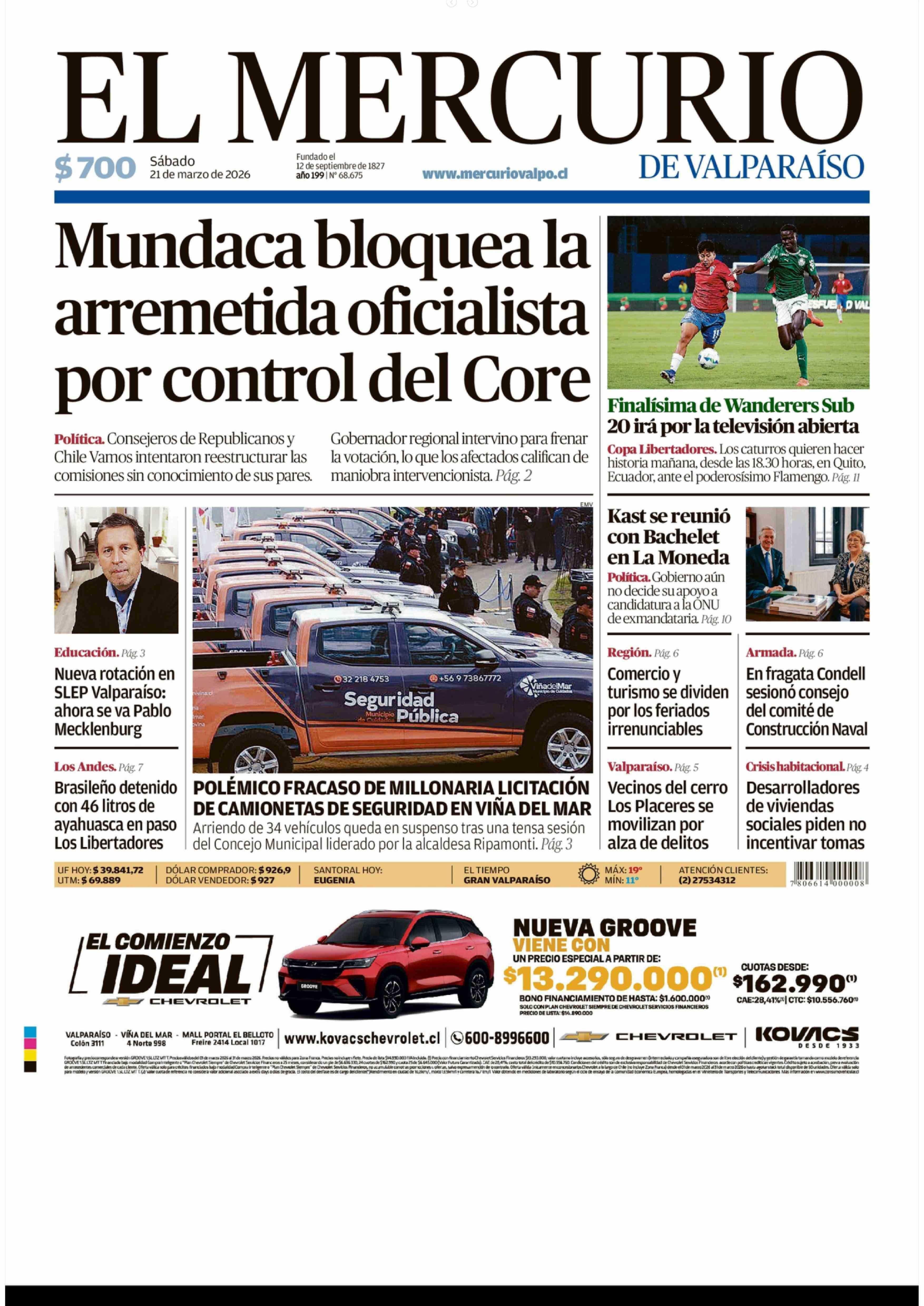 PORTADA EL MERCURIO DE VALPARAÍSO CHILE 21-03-2026 El Mercurio de Valparaíso |