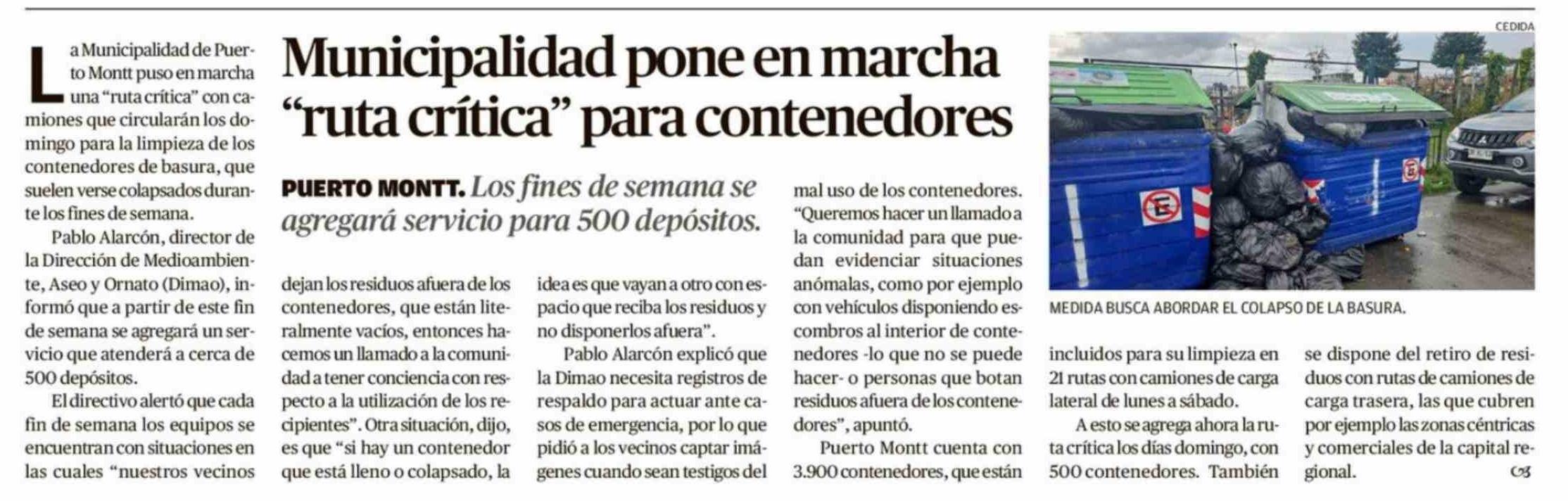 Título: Municipalidad pone en marcha "ruta crítica" para contenedores