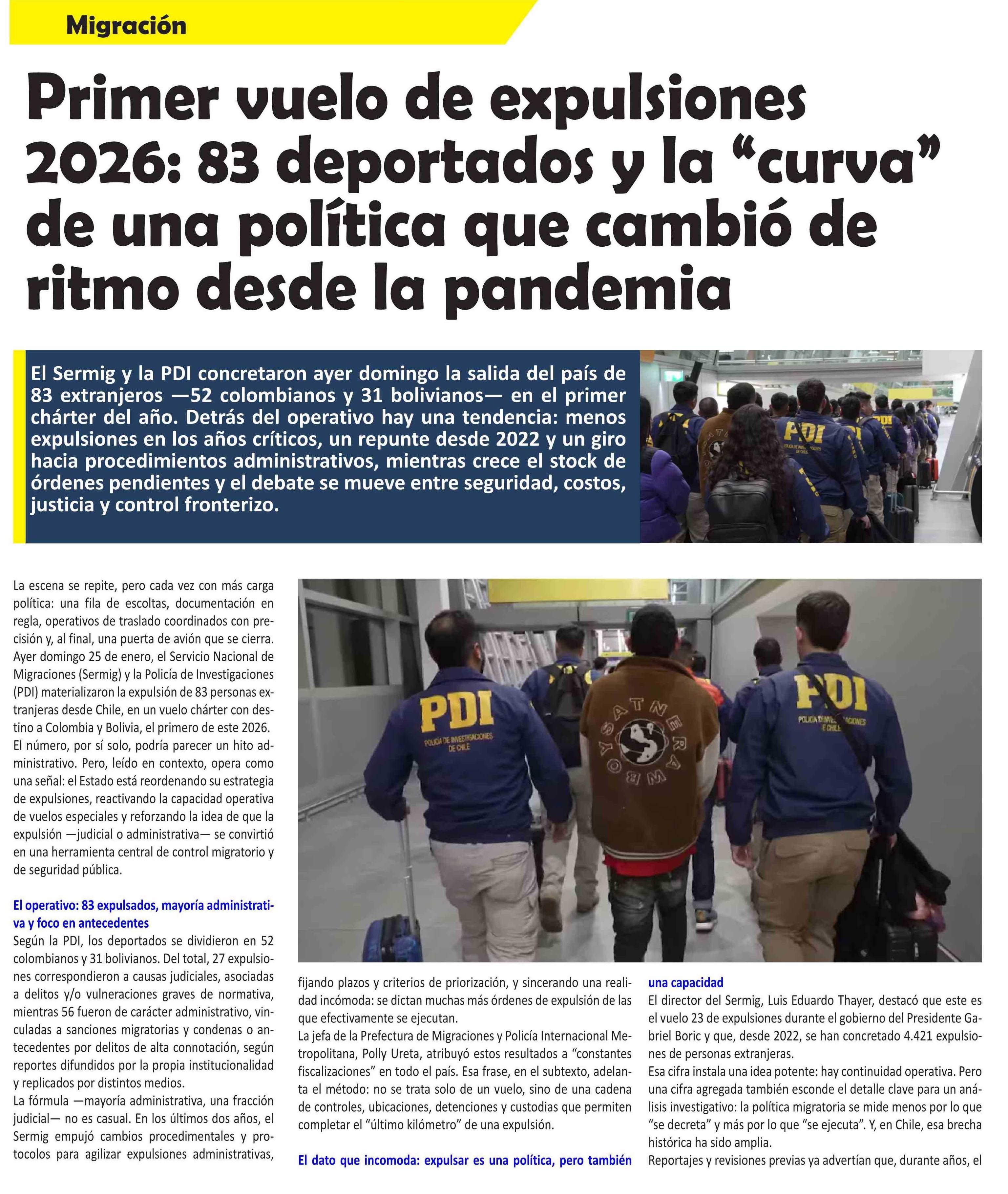 Título: Primer vuelo de expulsiones 2026: 83 deportados y la "curva" de una política que cambió de ritmo desde la pandemia