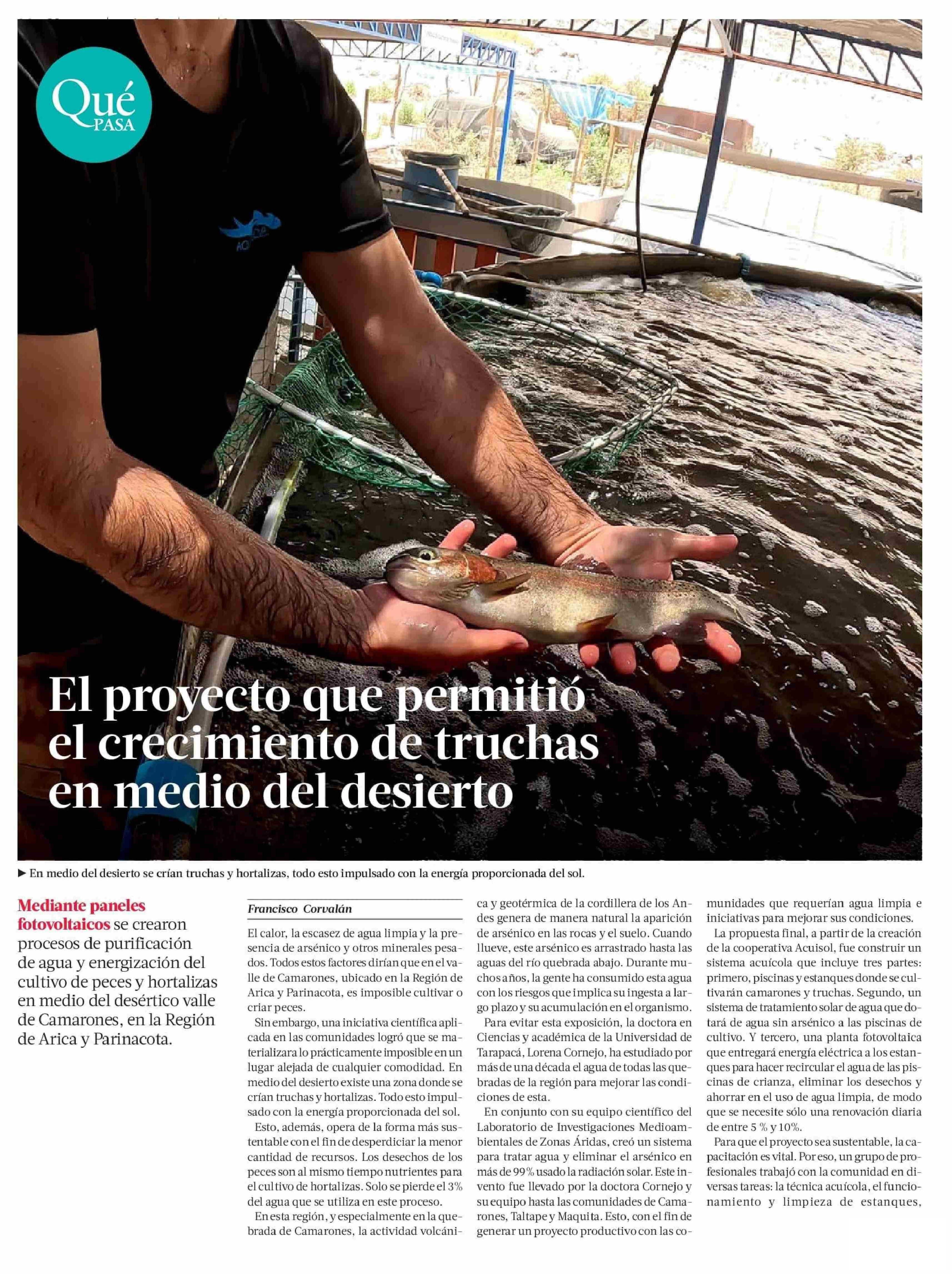 El proyecto qué permitió el crécimiento de truchas en medio del desierto 21-11-2023 La Tercera |