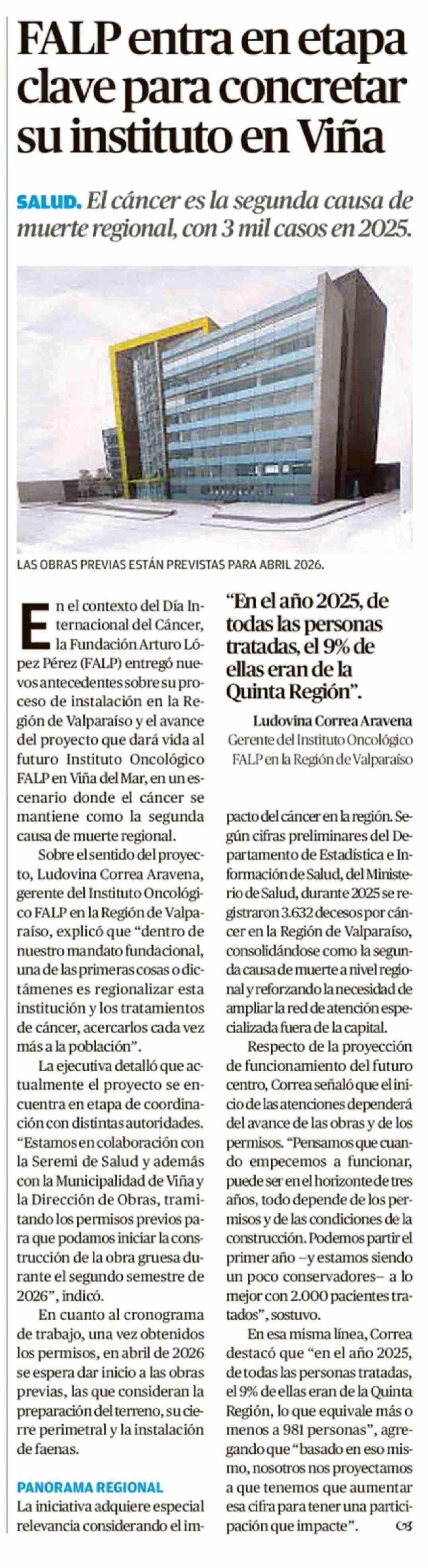 FALP entra en etapa clave para concretar su instituto en Viña 12-02-2026 El Mercurio de Valparaíso |
